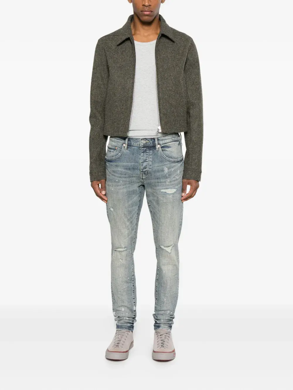 светло-индиговый, эффект потертости, выбеливание, пять карманов, шлевки для ремня, застежка на пуговицу