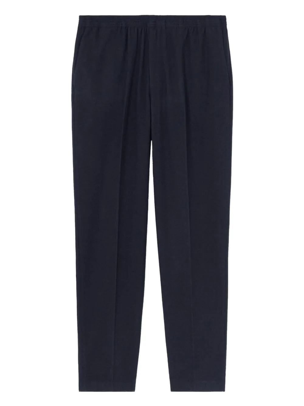 синий цвет, эластичный пояс, боковые карманы в швах, задние прорезные карманы