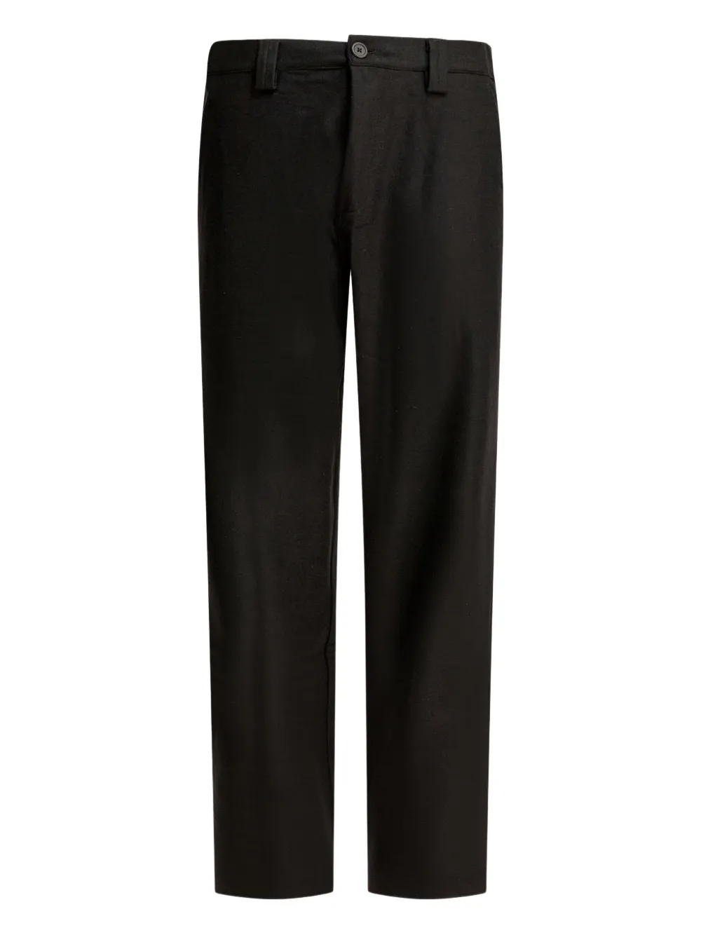 чёрные джинсы с задним накладным карманом, застёжкой на пуговицы, шлёвками для ремня и прямыми штанинами