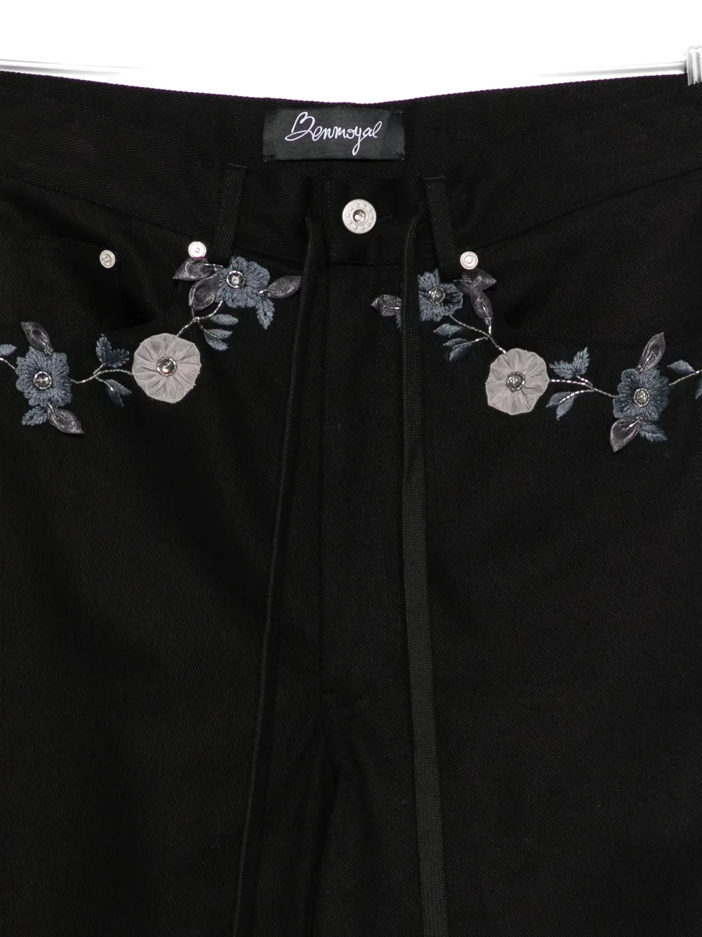 Брюки с цветочной вышивкой Benjamin Benmoyal, черный