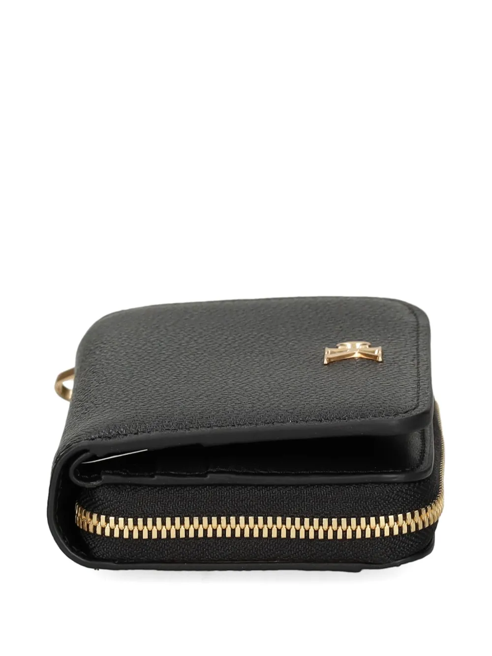 чёрная застёжка-молния, логотип, внешний карман, фурнитура золотистого оттенка, зернистая текстура