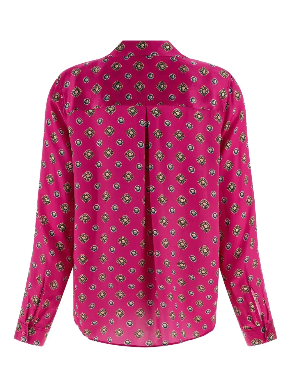 фуксия, застёжка на пуговицы спереди, длинные рукава с манжетами, шелк