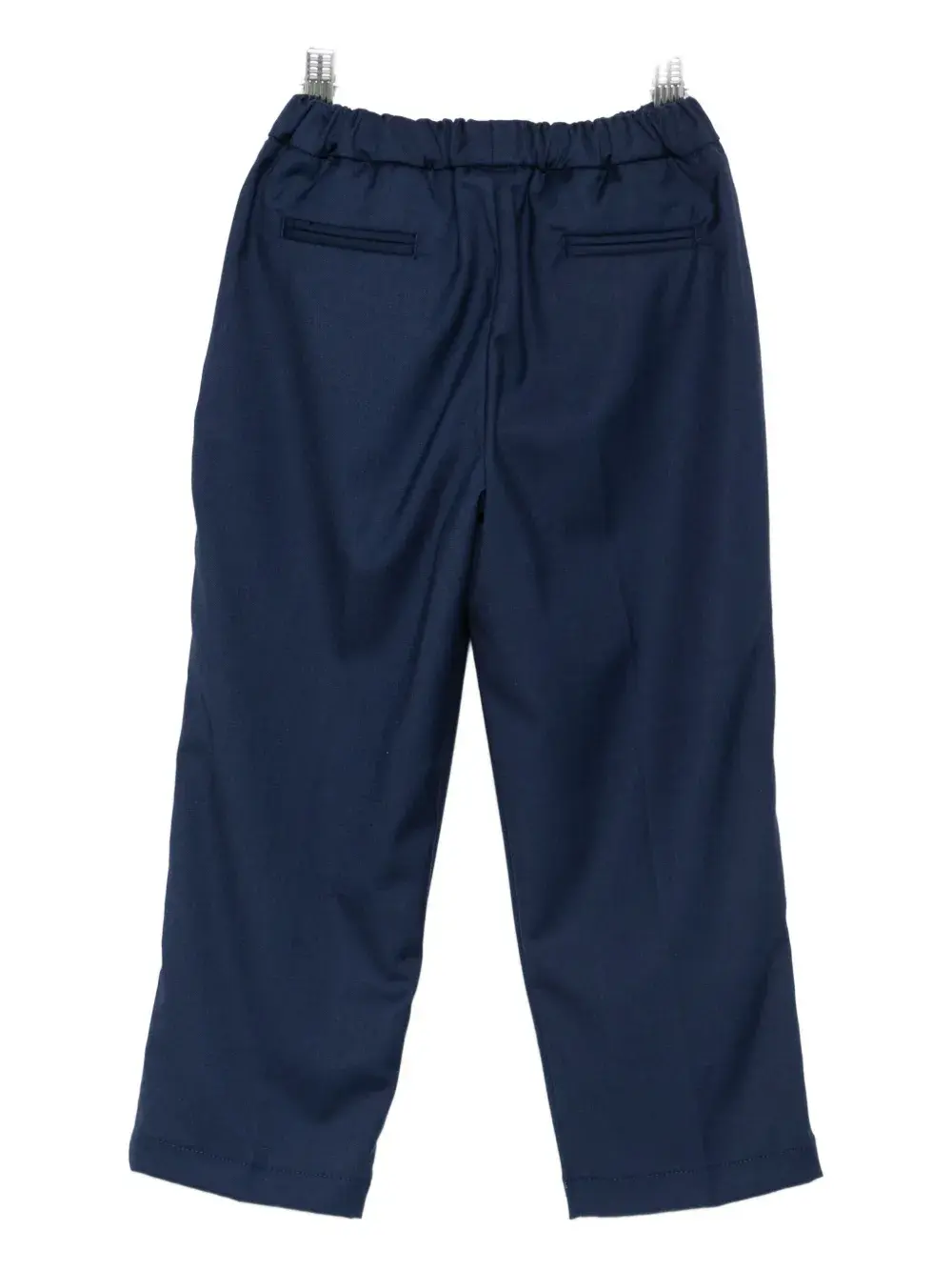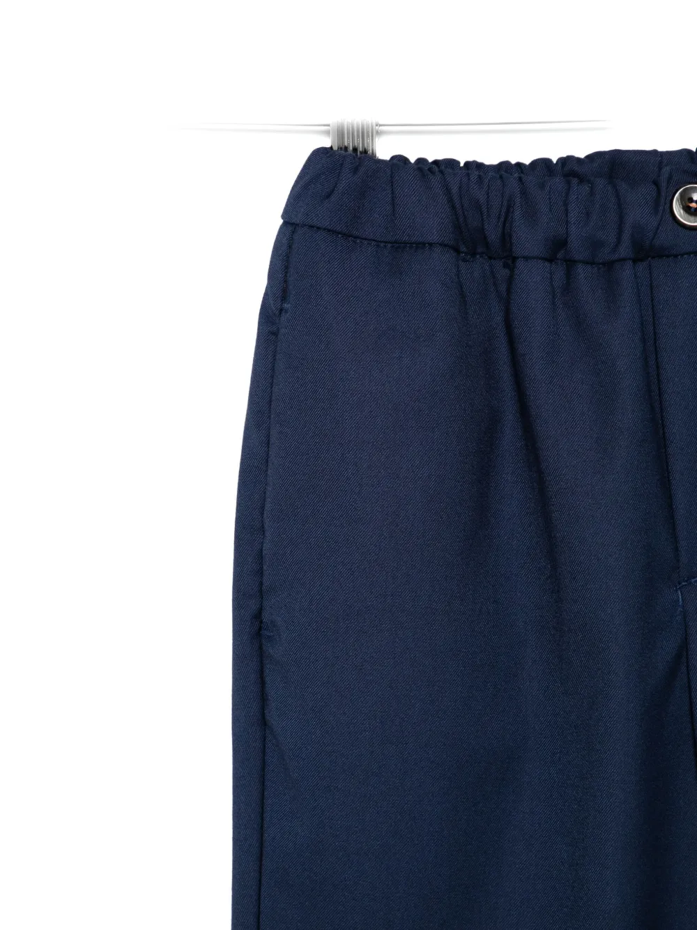 синий эластичный пояс, застежка на пуговицы, боковые карманы в шве, задние прорезные карманы