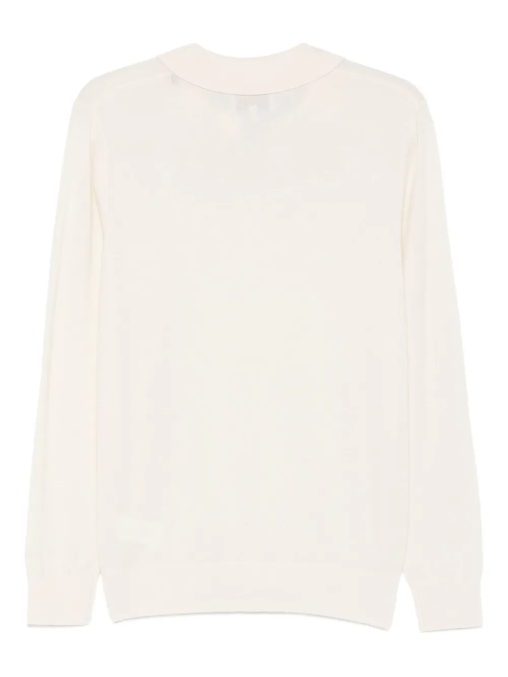 оф вайт (белый) лонгслив с v-образным вырезом и воротником поло
