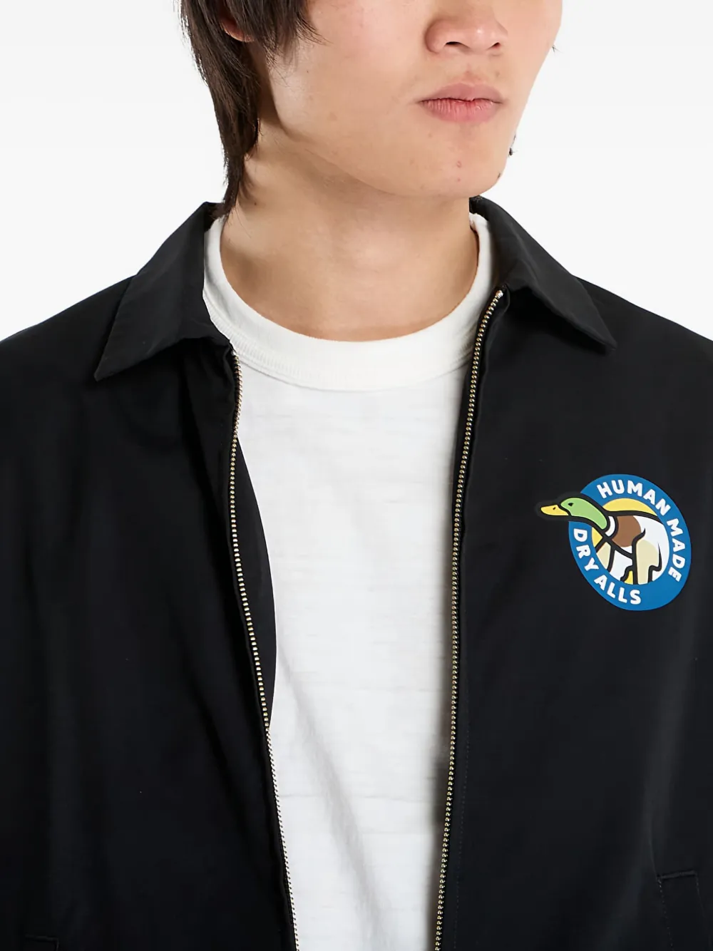 черная нашивка с логотипом, застежка на молнии, воротник с острыми концами, боковые прорезные карманы, длинный рукав