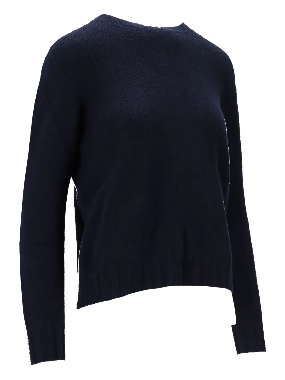 тёмно-синий круглый вырез длинные рукава ребристый пояс ребристые манжеты вязаная фактура
