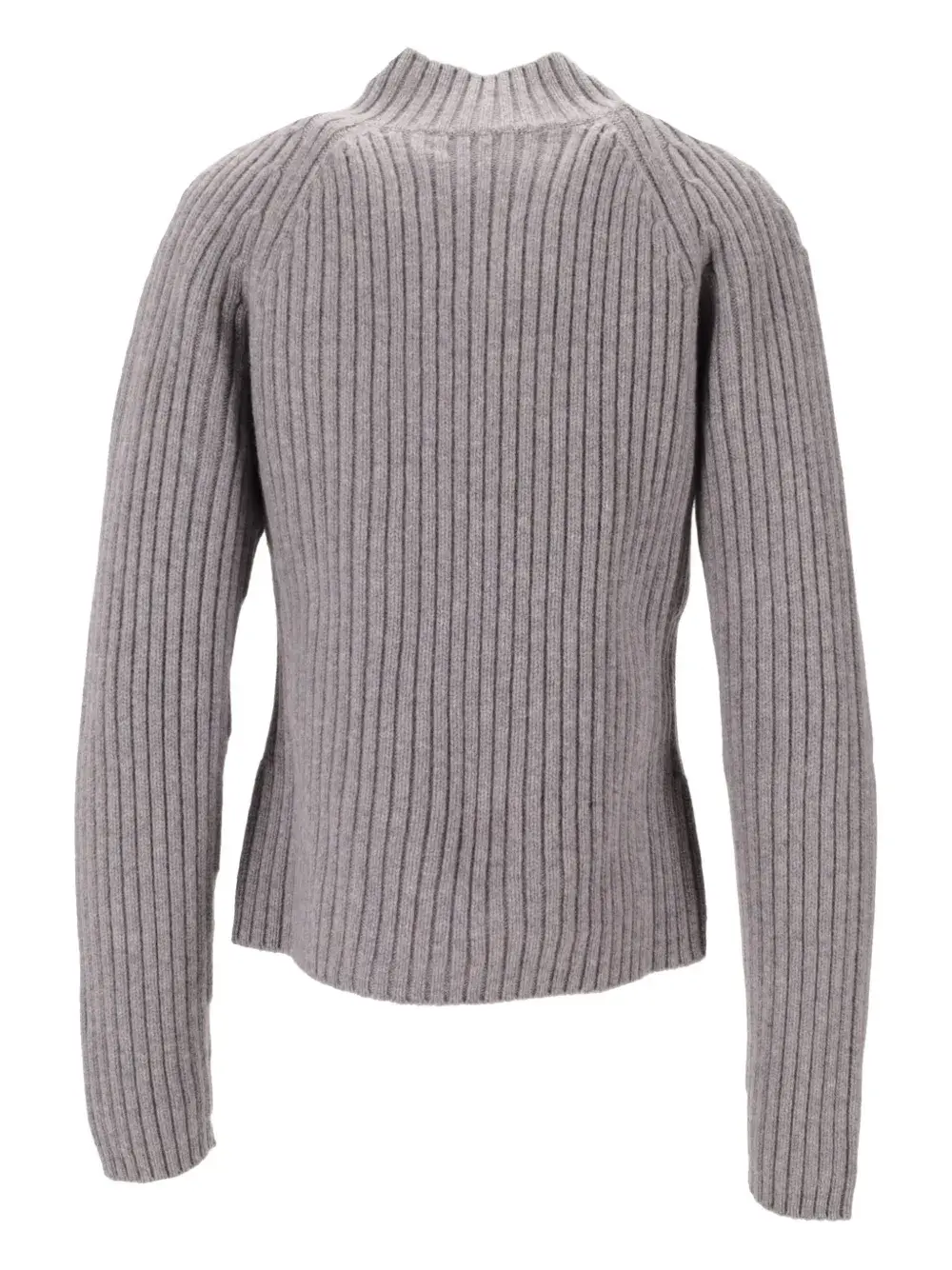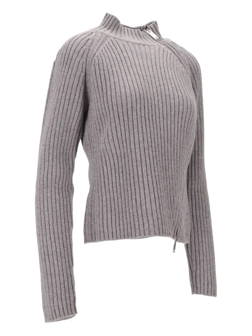 Серый в рубчик трикотаж с молнией, высокий воротник, длинные рукава