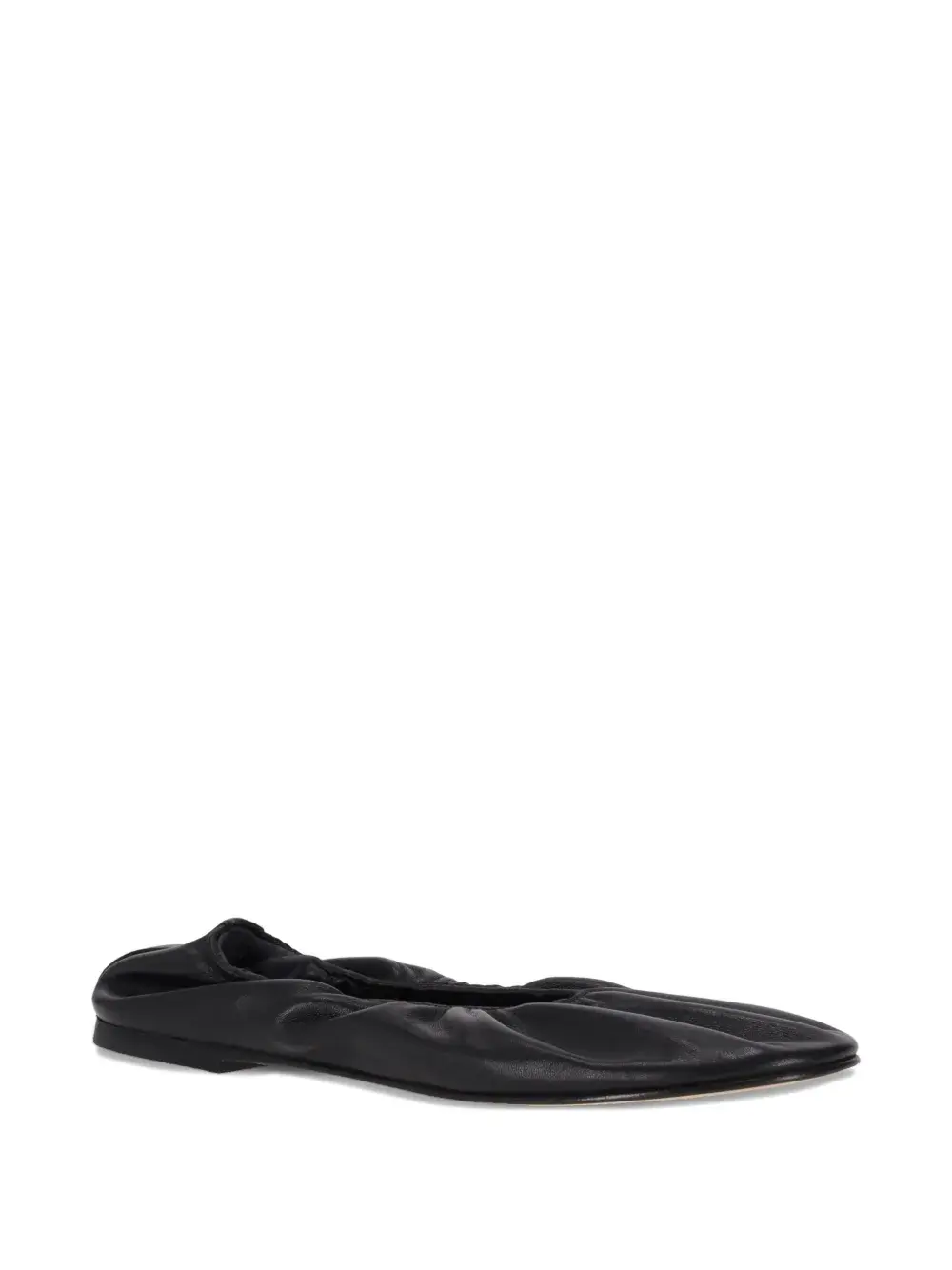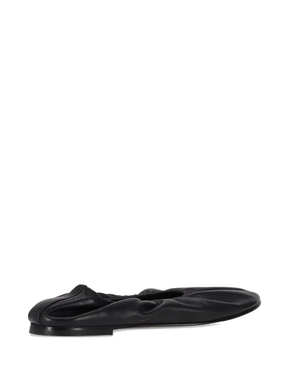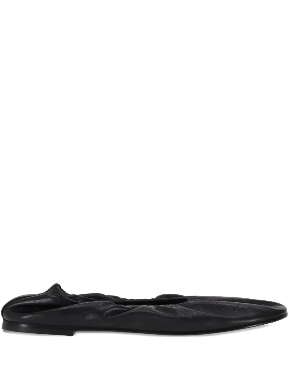 балетки в стиле балеток из чёрной кожи с присборенным дизайном и плоской подошвой