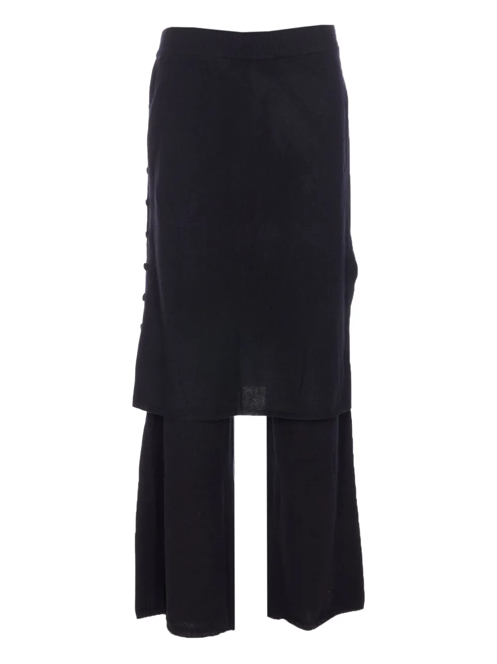 чёрная двухслойная юбка с эластичной талией и боковыми пуговицами