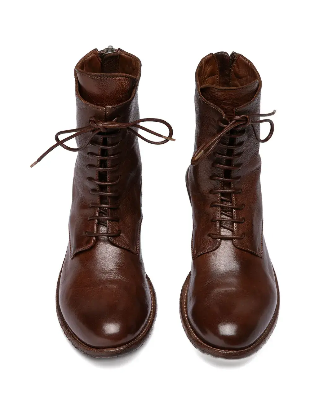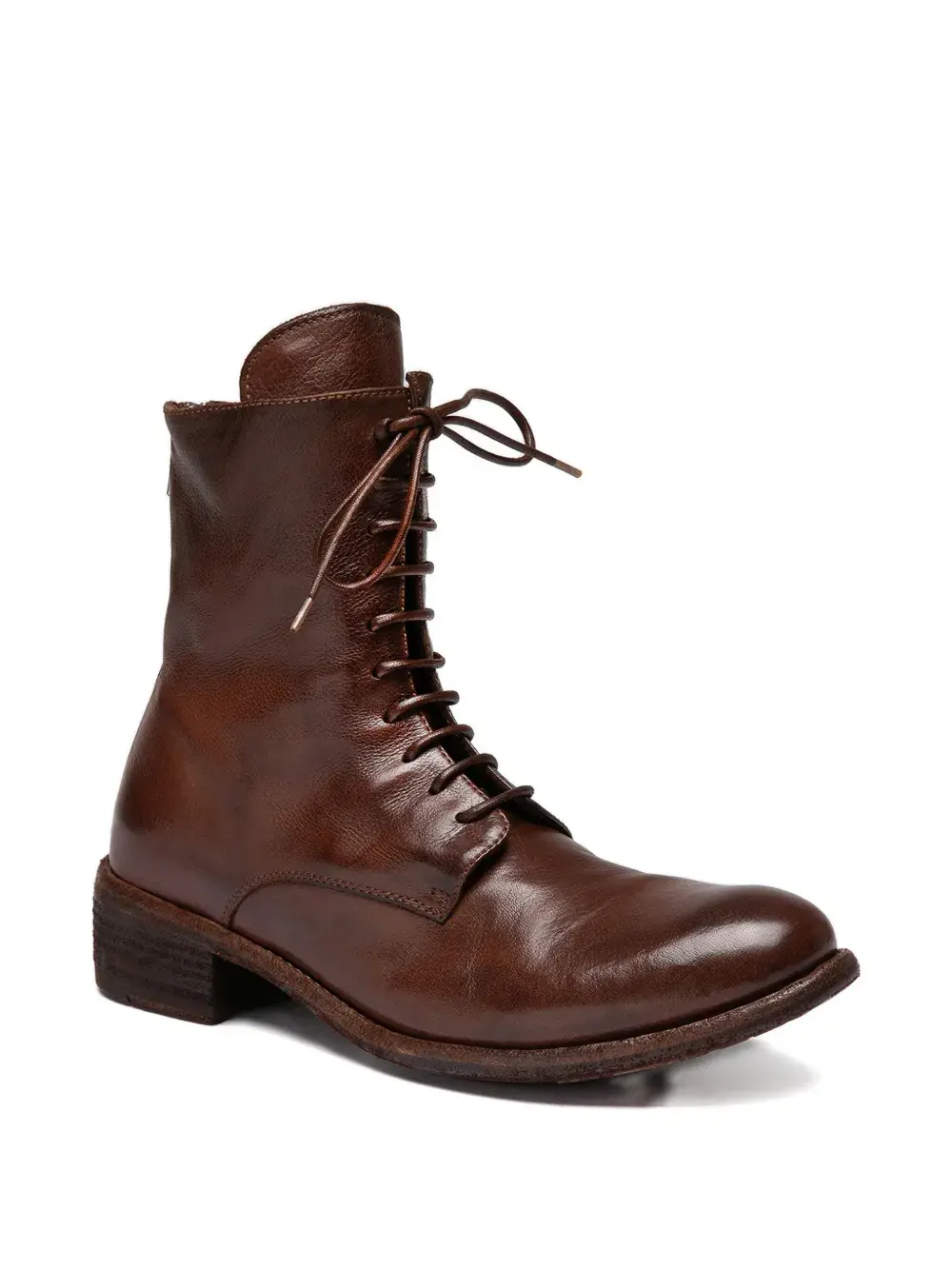 коричневый, застежка-молния сзади, шнуровка спереди, утолщённый каблук, круглый носок