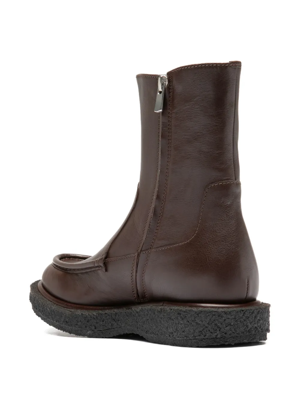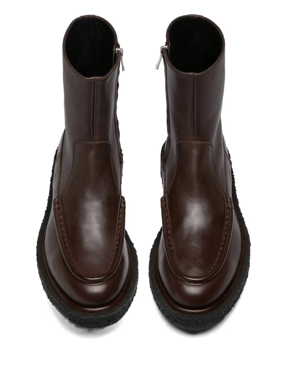 верх из коричневой кожи, застежка-молния сбоку, плоская подошва