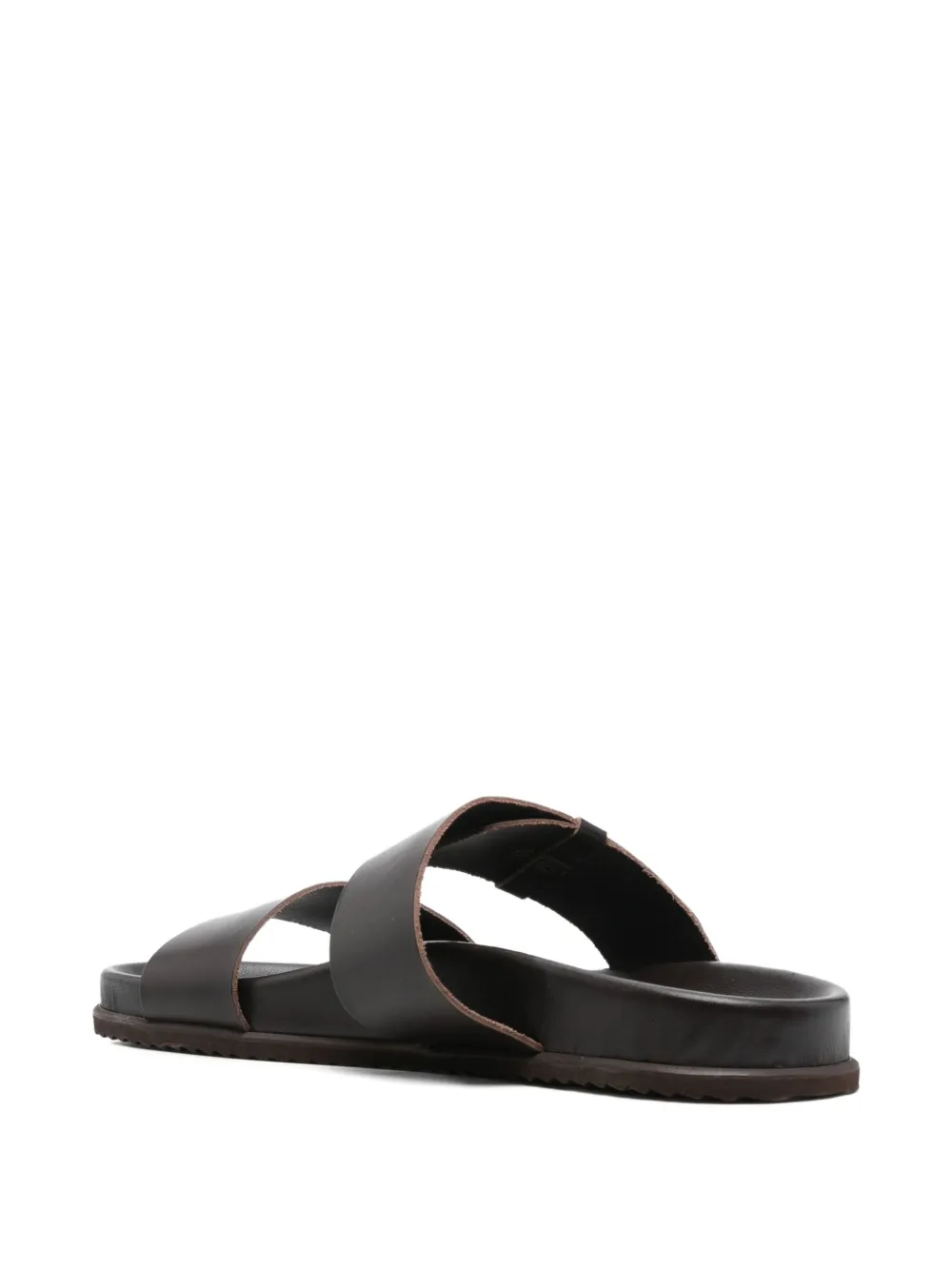 темно-коричневые кожаные босоножки на плоской подошве с открытым носком