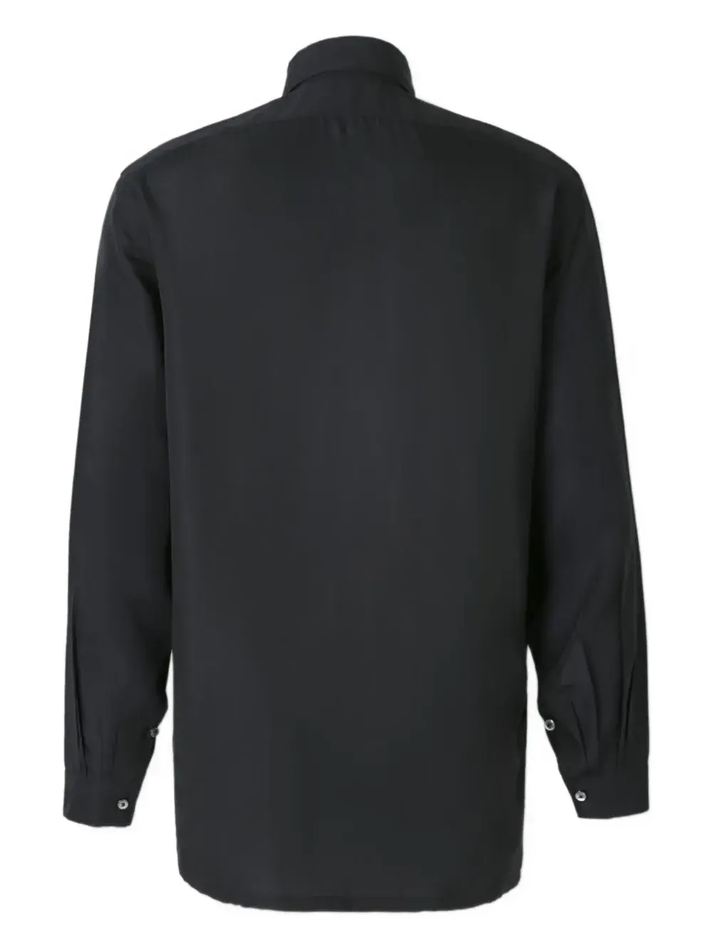 черная рубашка с застежкой на пуговицы спереди, регулируемыми манжетами на пуговицах, однотонным принтом и съемным воротником