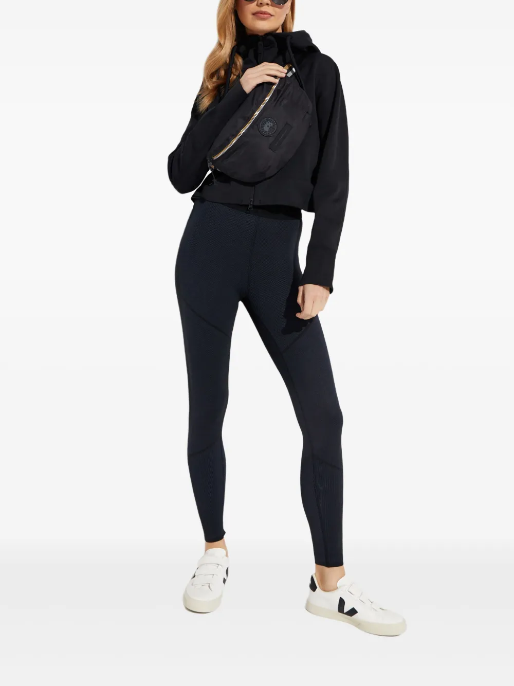 черный капюшон, завязки, застежка-молния спереди, длинные рукава