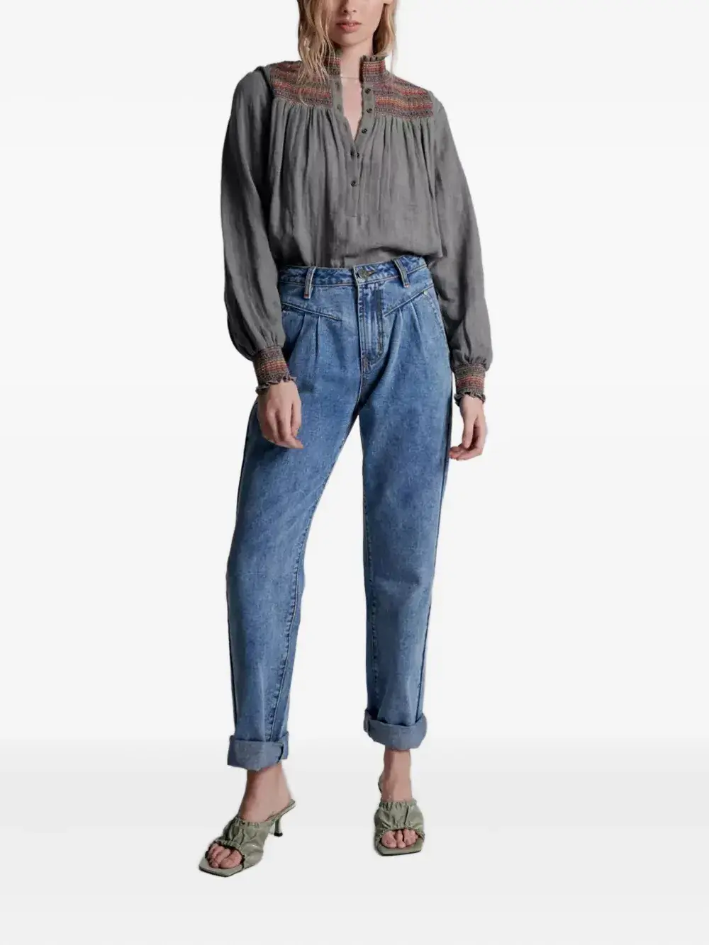 синие шлевки для ремня, нашивка с логотипом сзади