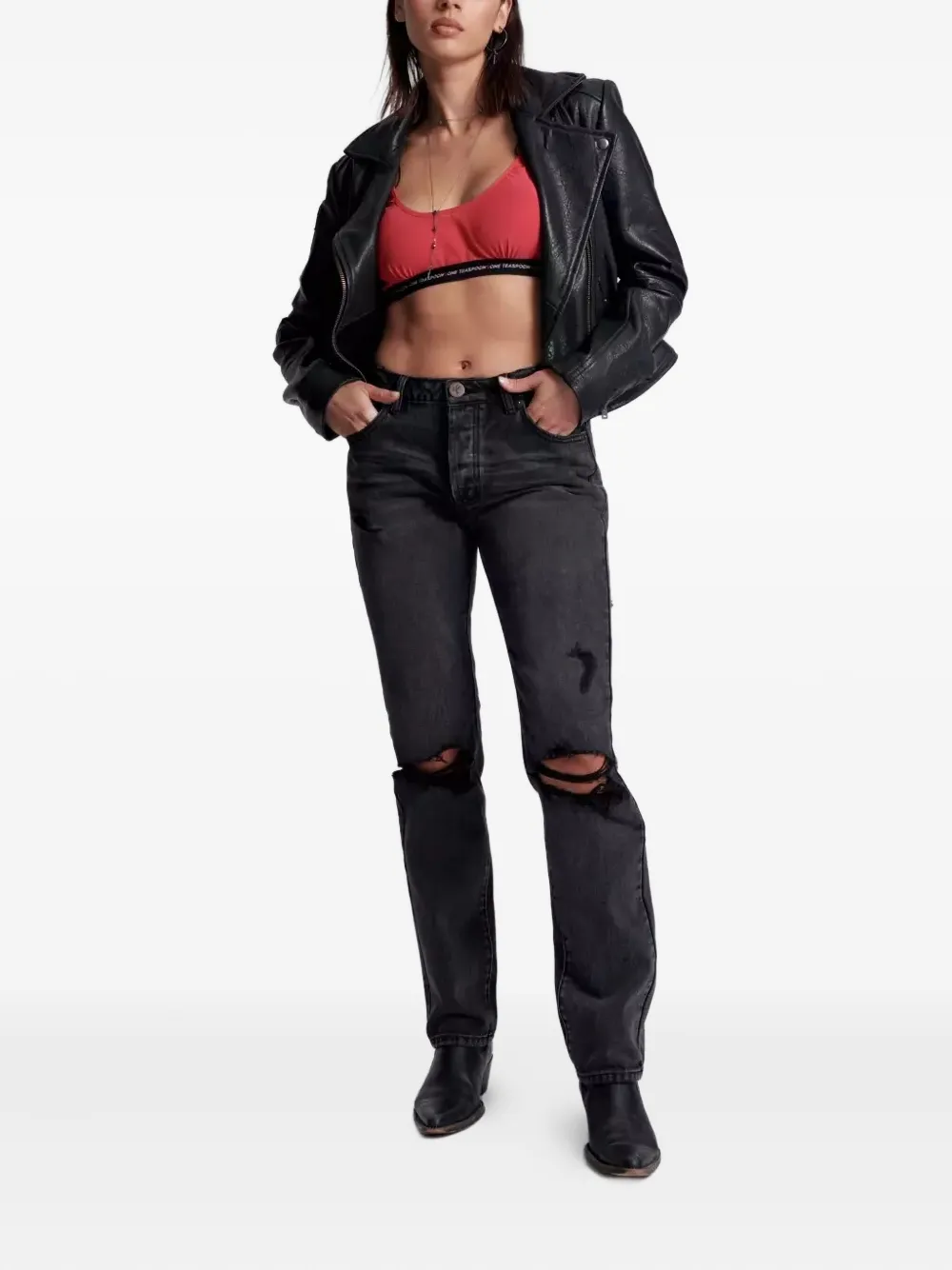 Джинсы с пятью карманами и эффектом потертостей One Teaspoon, серый