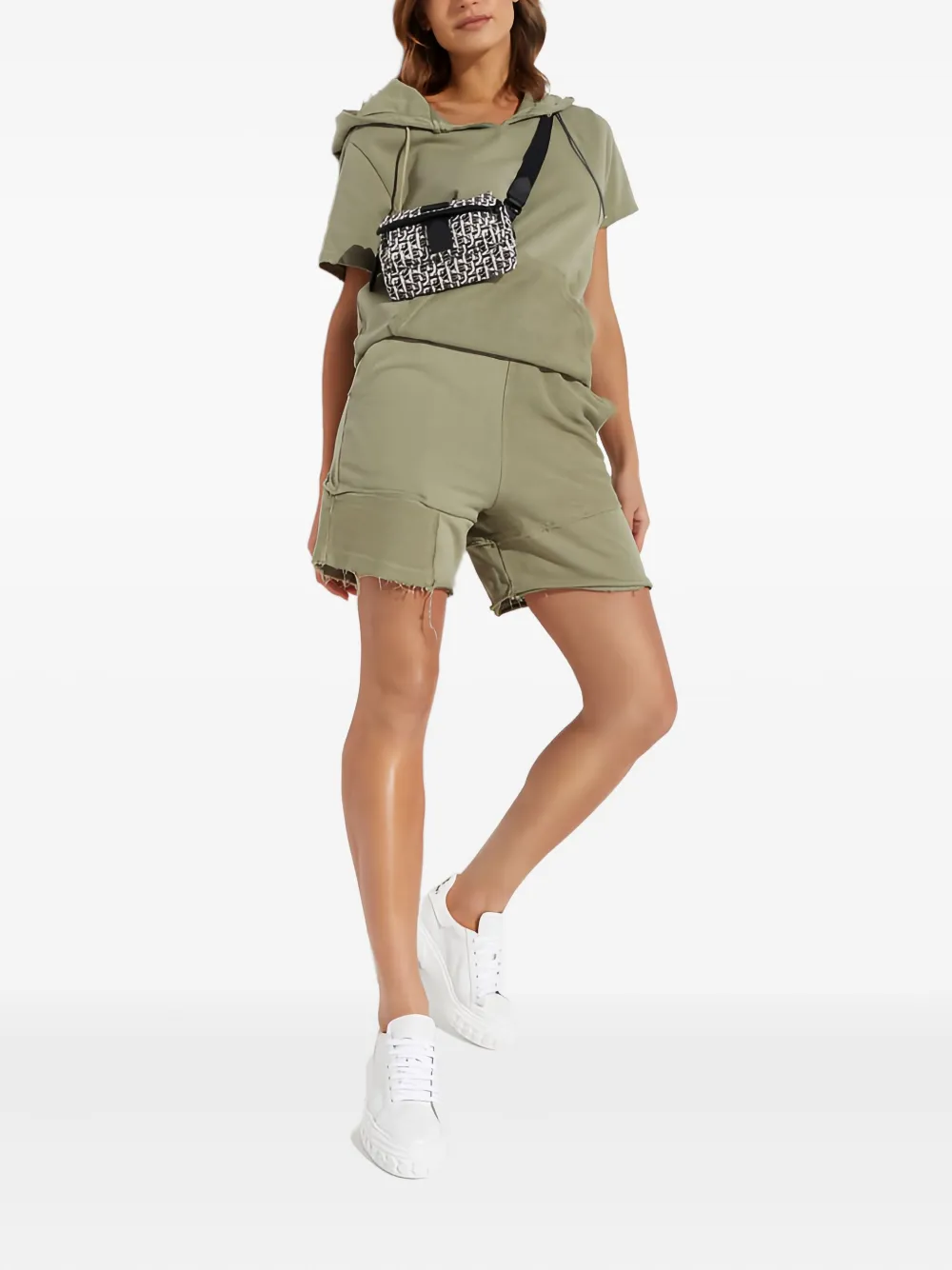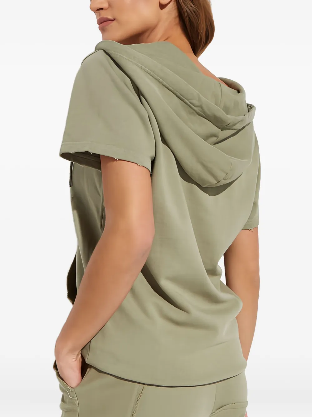 зеленый худи с короткими рукавами, передним карманом и кулиской