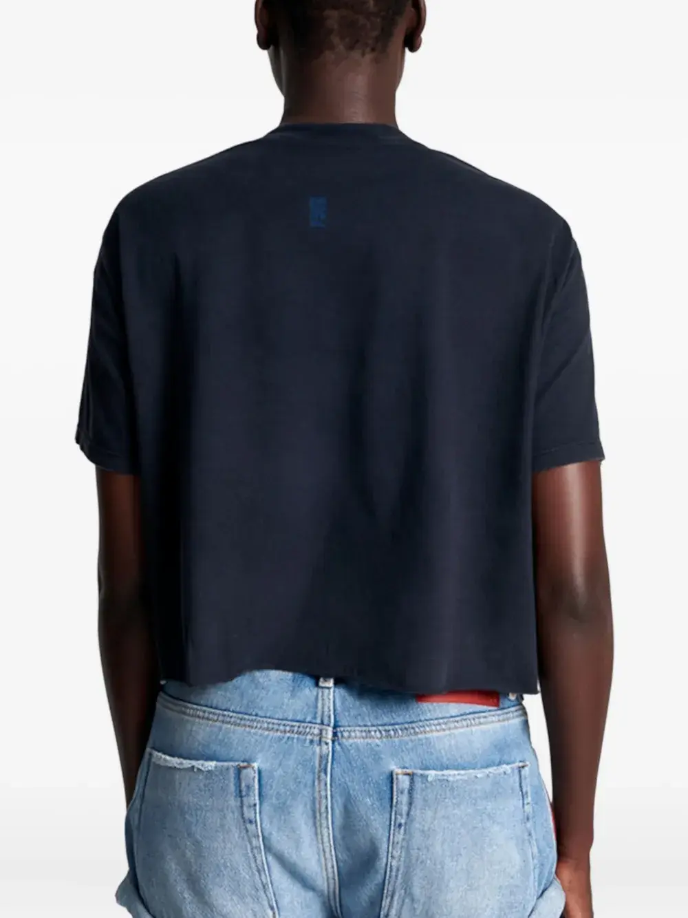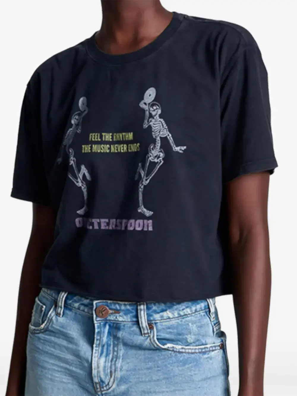 чёрная футболка с графическим принтом, круглым вырезом и короткими рукавами