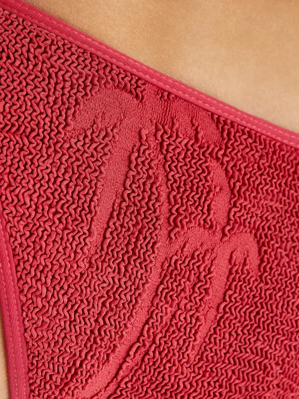 красный с принтом в виде пальм, текстурированной отделкой, боковой завязкой