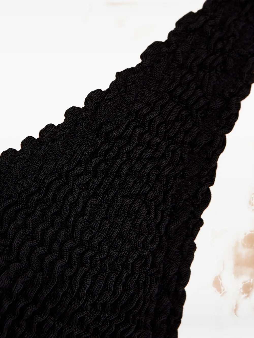чёрные фактурные треугольные чашечки, бретели на плечах, завязка на спине