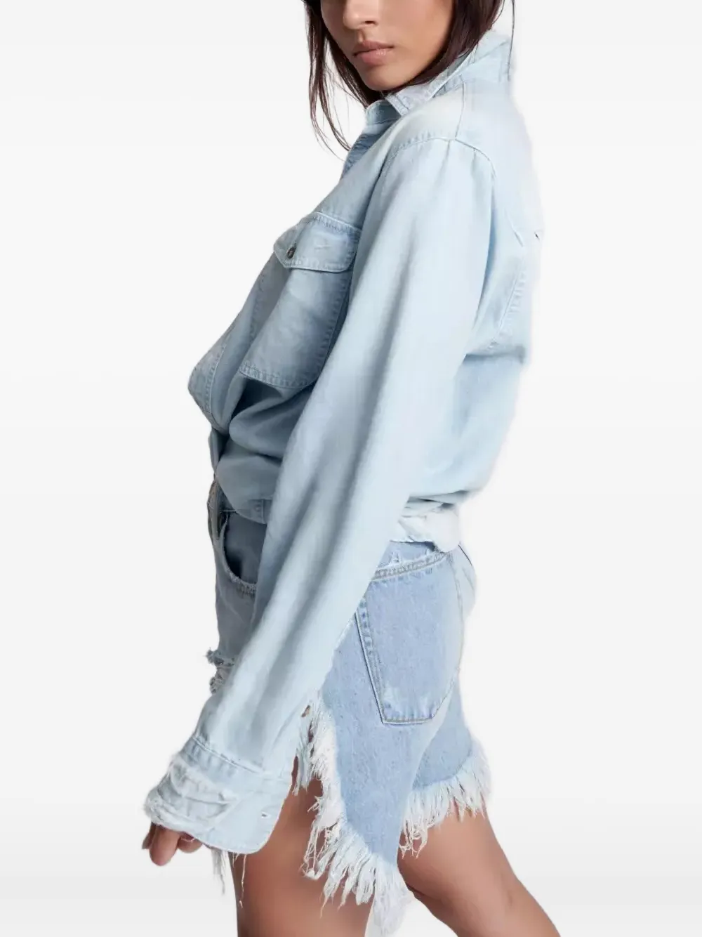 Рубашка из шамбре на пуговицах One Teaspoon, синий 25 088₽