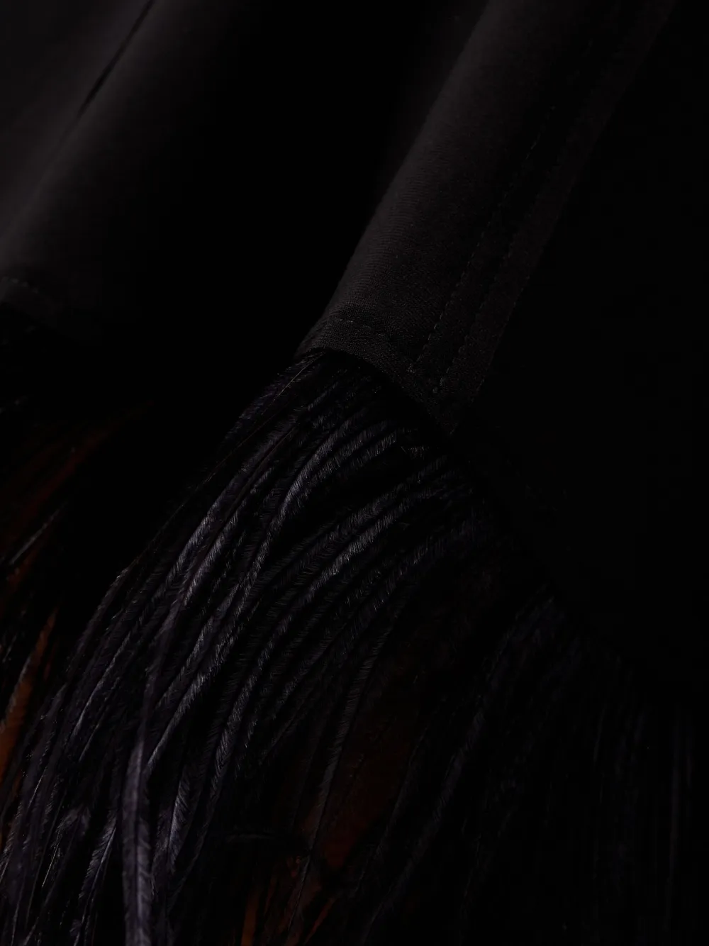 чёрная отделка из перьев, застёжка-молния сзади, высокая талия
