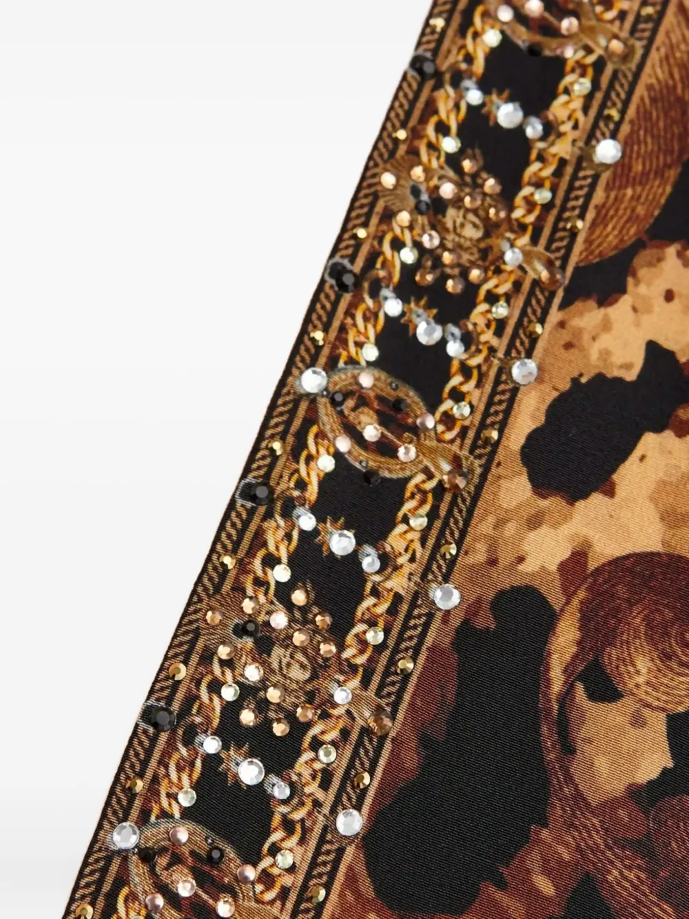 черный цветочный принт, украшения кристаллами, глубокий V-образный вырез, короткие рукава, завязки