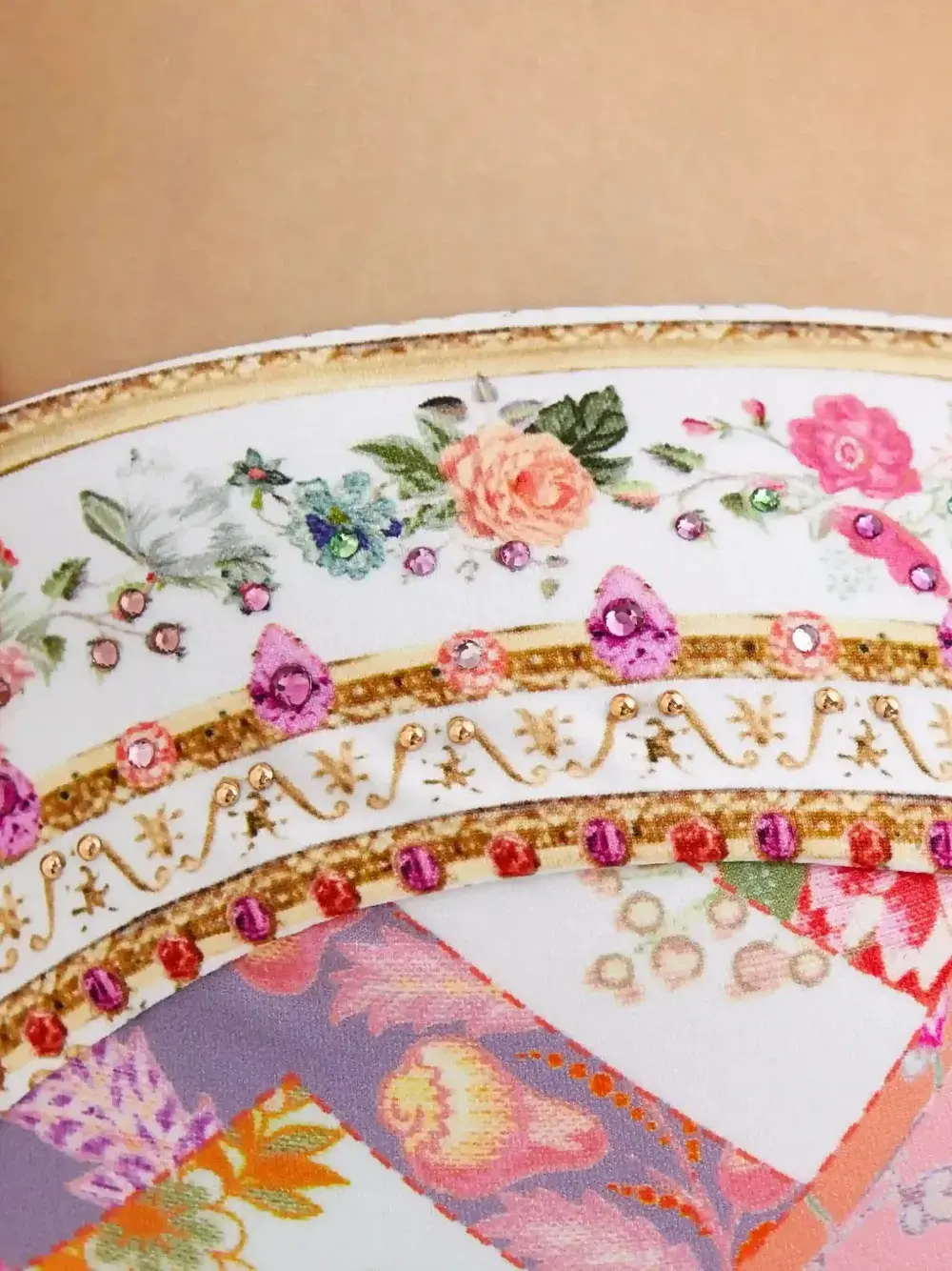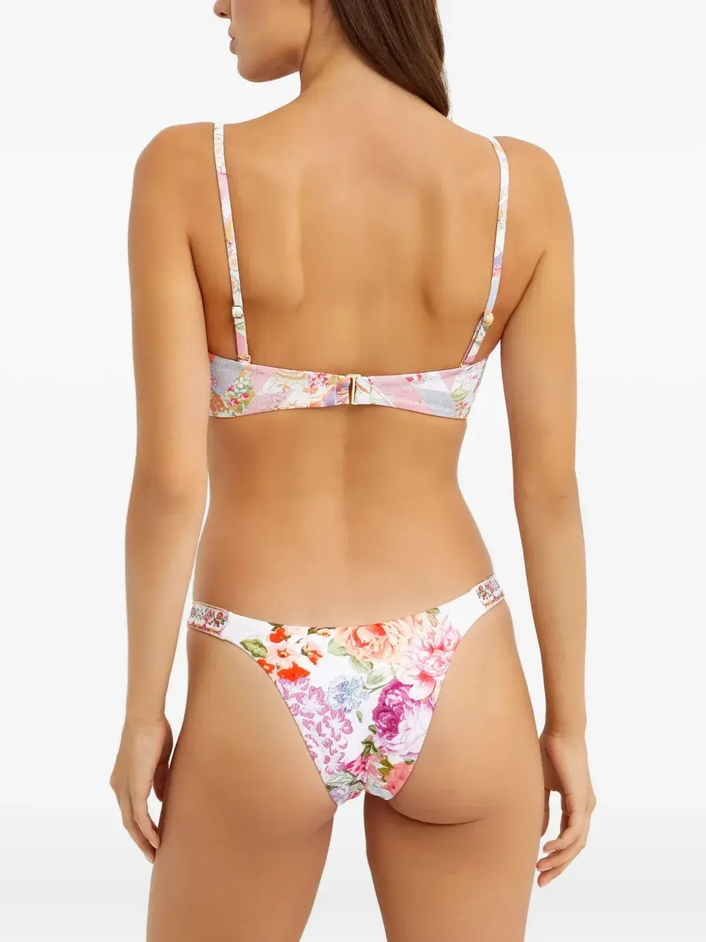 белый/разноцветный, с цветочным принтом, регулируемые тонкие бретели, фасон балконет, съемные чашечки, застежка на крючок сзади