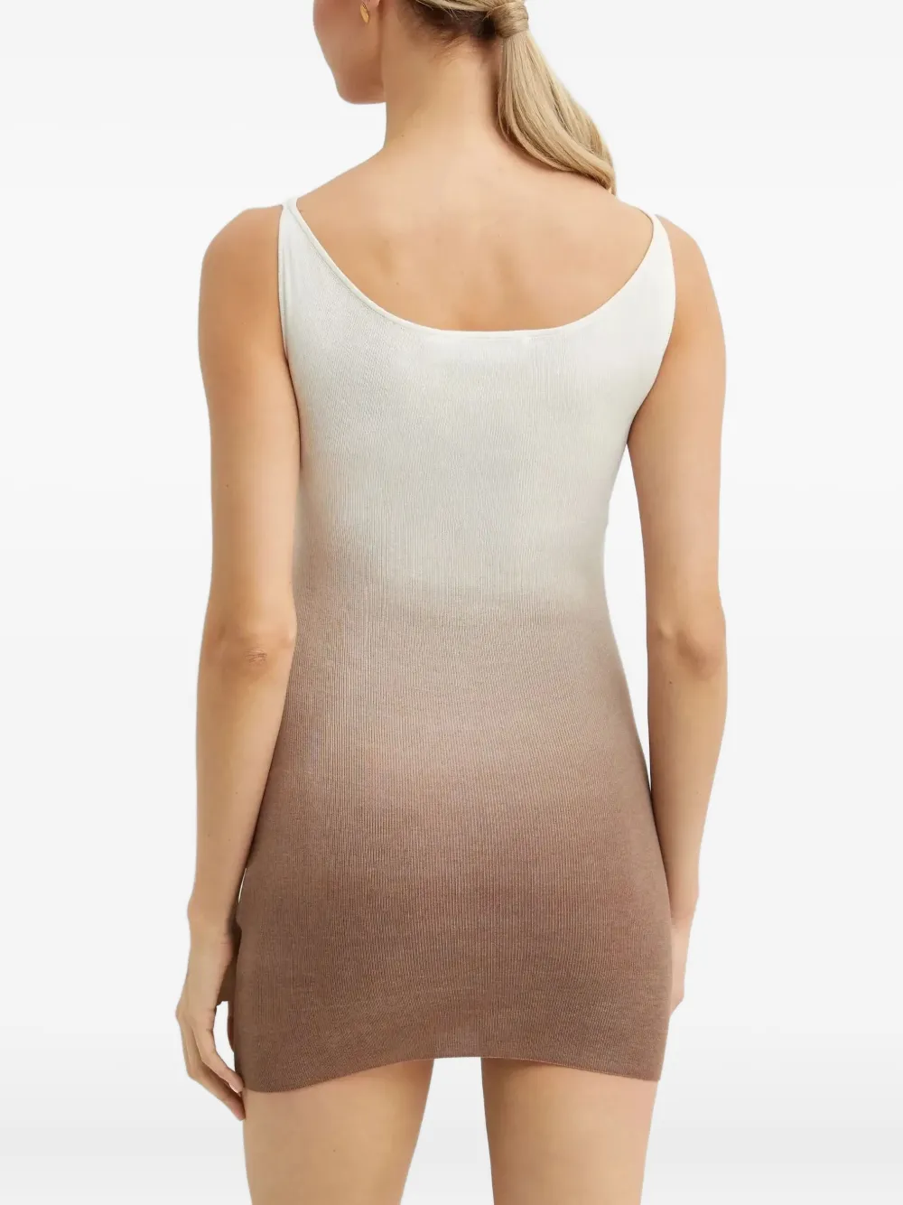 коричневое мини-платье с эффектом омбре, круглым вырезом и без рукавов