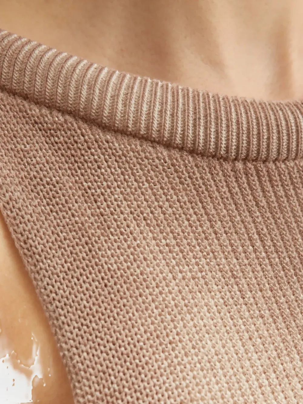 макси-платье коричневого цвета с омбре-эффектом, лодочкой, без рукавов, в рубчик