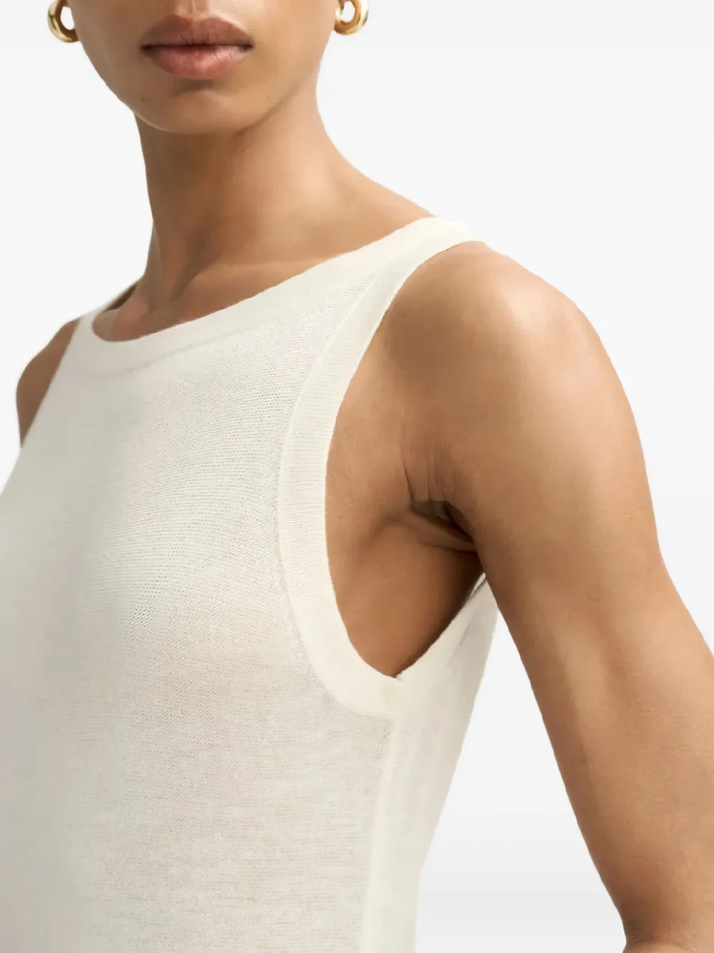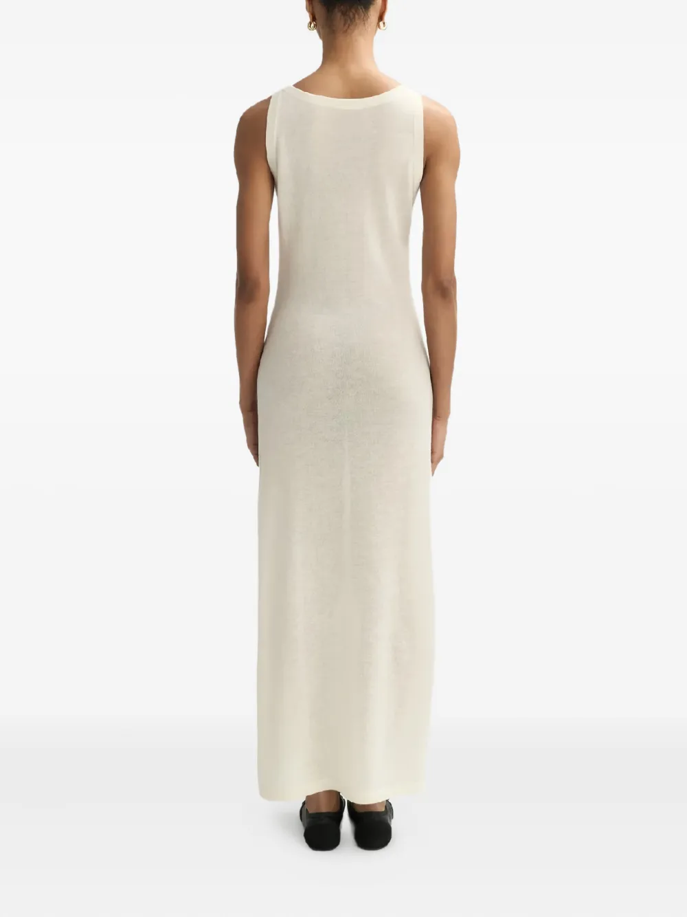 белое макси-платье без рукавов с круглым вырезом