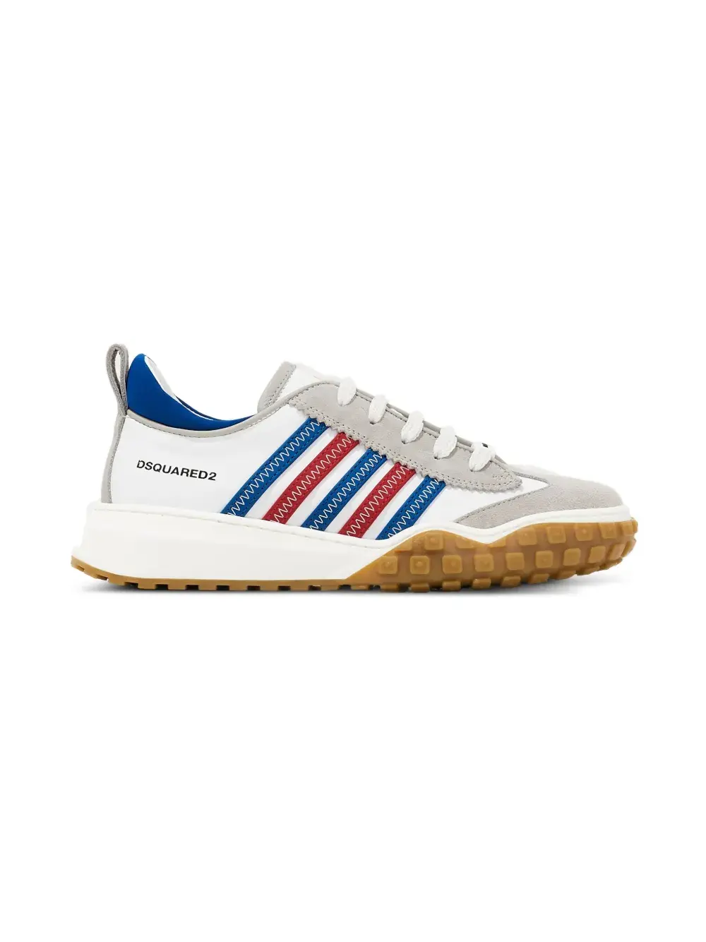 белая кожа, полосатый элемент, шнуровка, круглый носок, резиновая подошва
