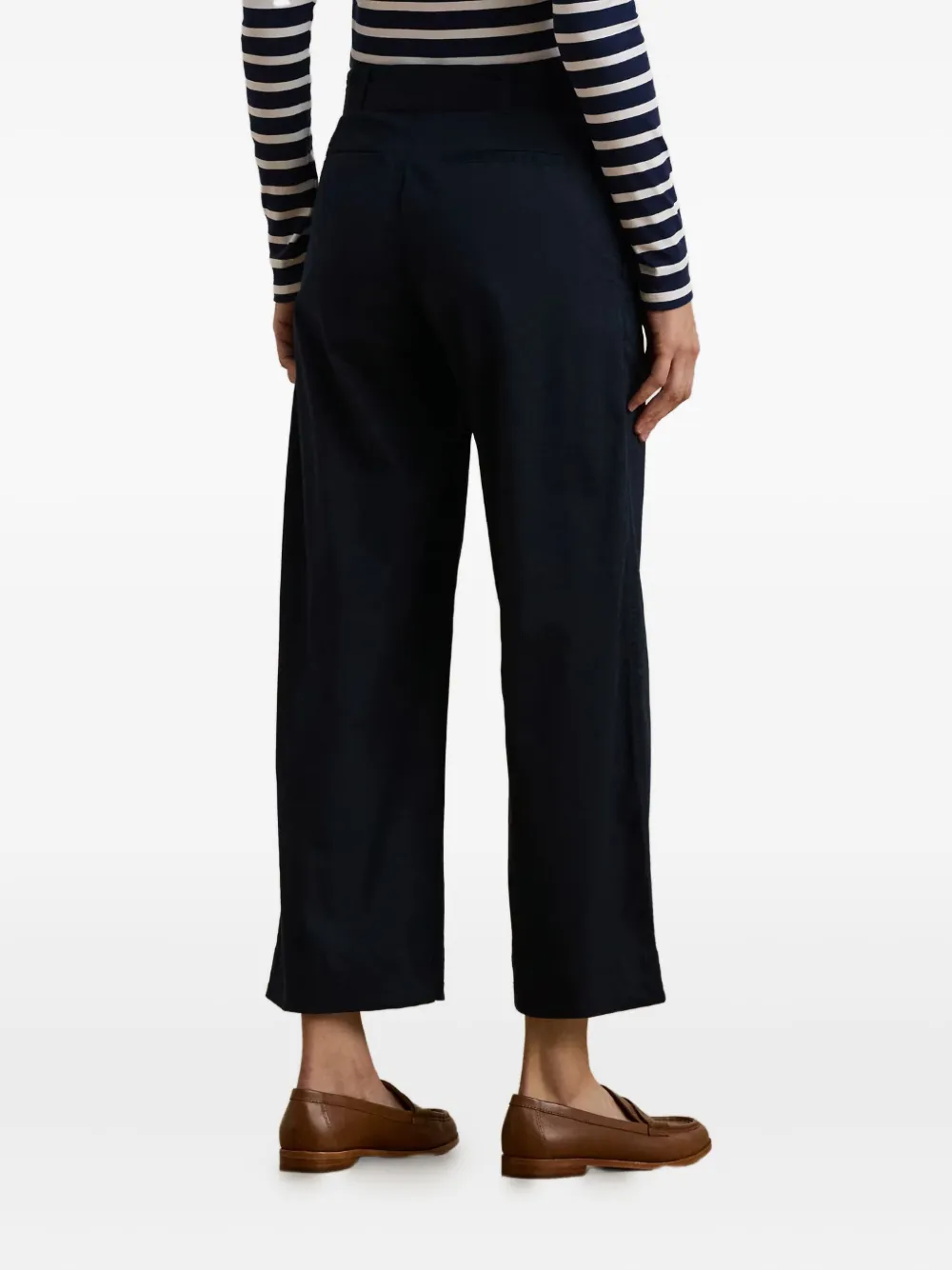 темно-синий пояс, два боковых кармана в швах, заутюженные складки