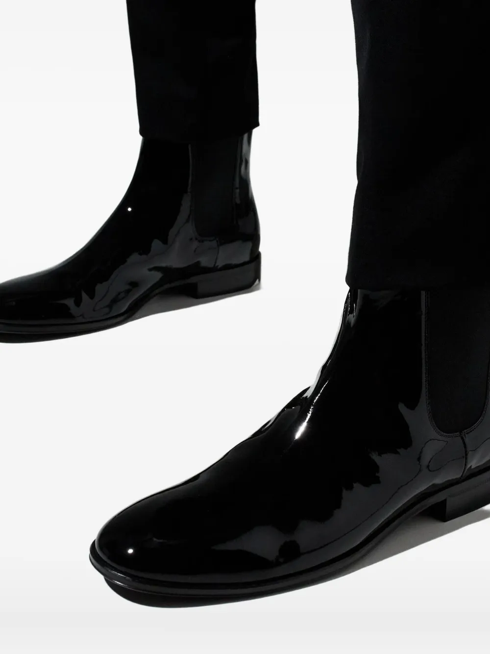 черные кожаные ботинки с эластичными боковыми вставками и петлей для подтягивания