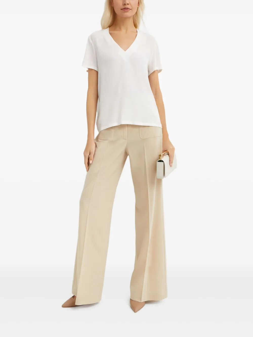 белая футболка с V-образным вырезом и короткими рукавами из пима-хлопка