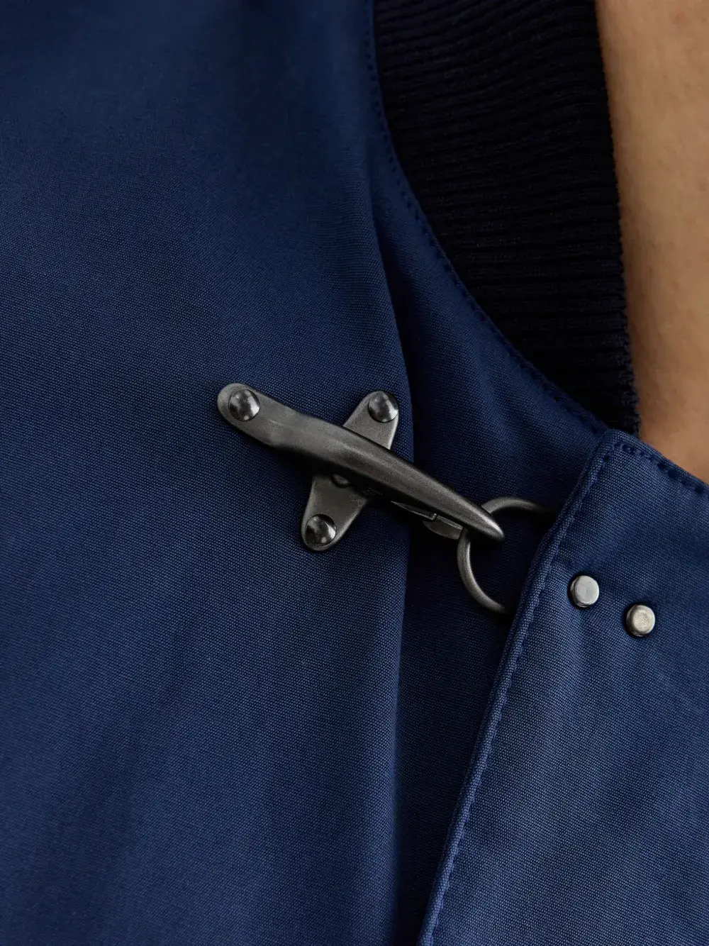 синие ребристые вставки, застёжка-молния, застёжка на кнопки, два передних кармана