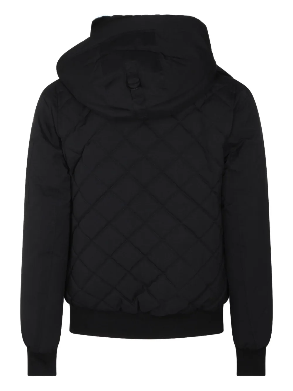 черная стеганая задняя панель, капюшон, застежка-молния, детали на молнии, логотип
