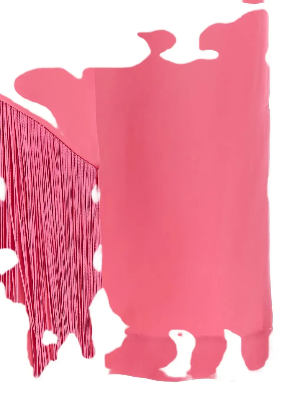 ярко-розовый топ на шее с завязкой и бахромой, без рукавов