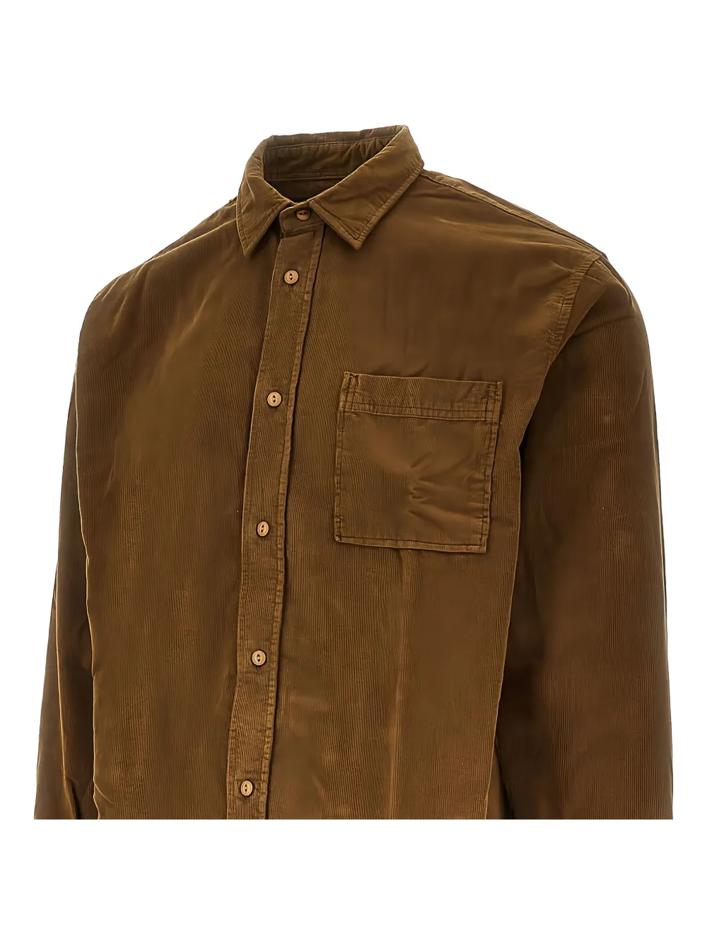 выжженный хаки, вельветовая фактура, нагрудный карман, застежка на пуговицы, длинные рукава, отложной воротник