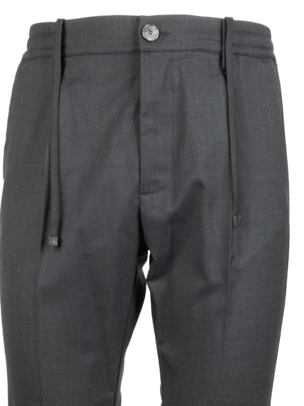 антрацитово-серый, застежка на пуговицы спереди, шнурок, шлевки для ремня, складки