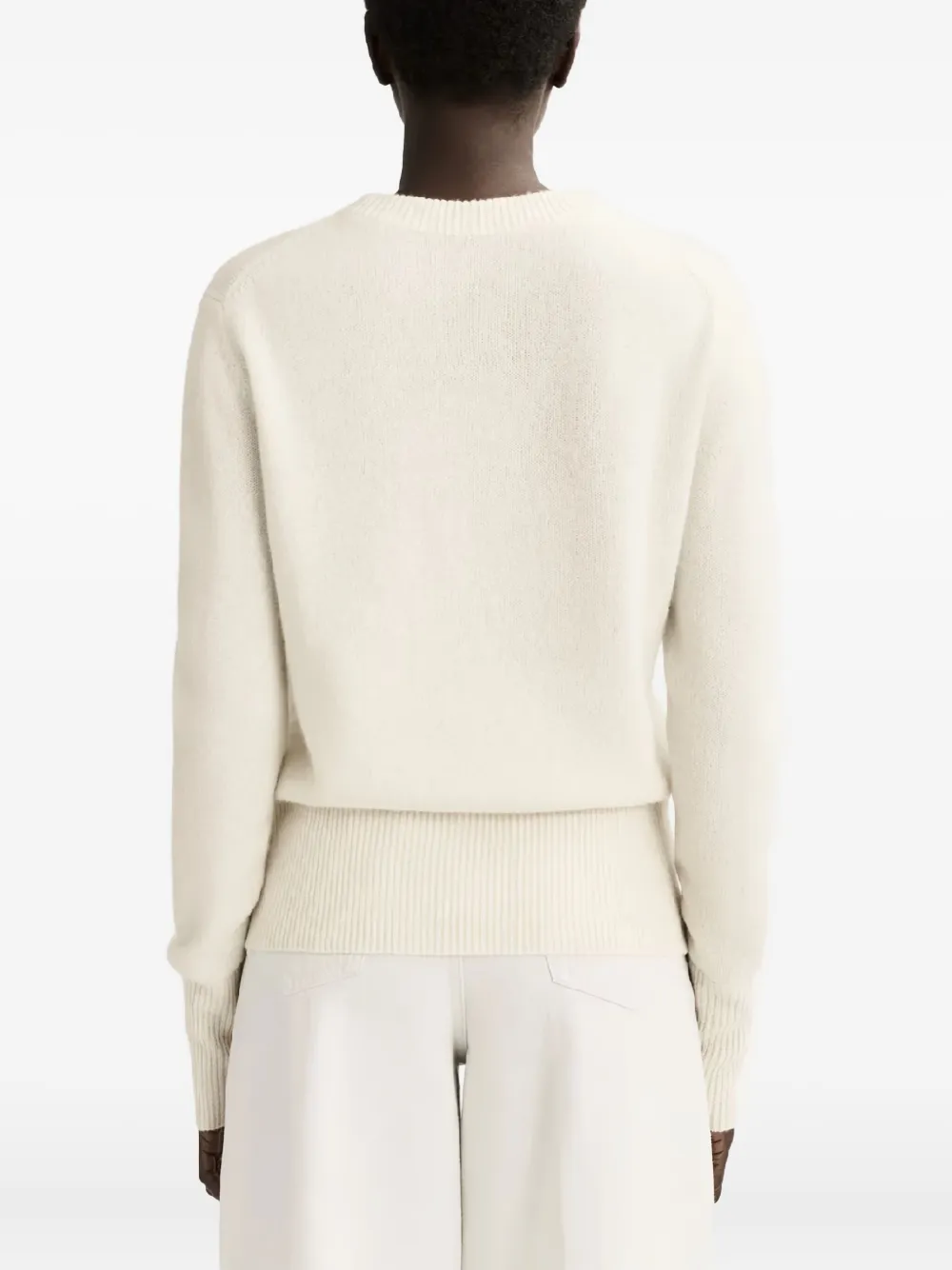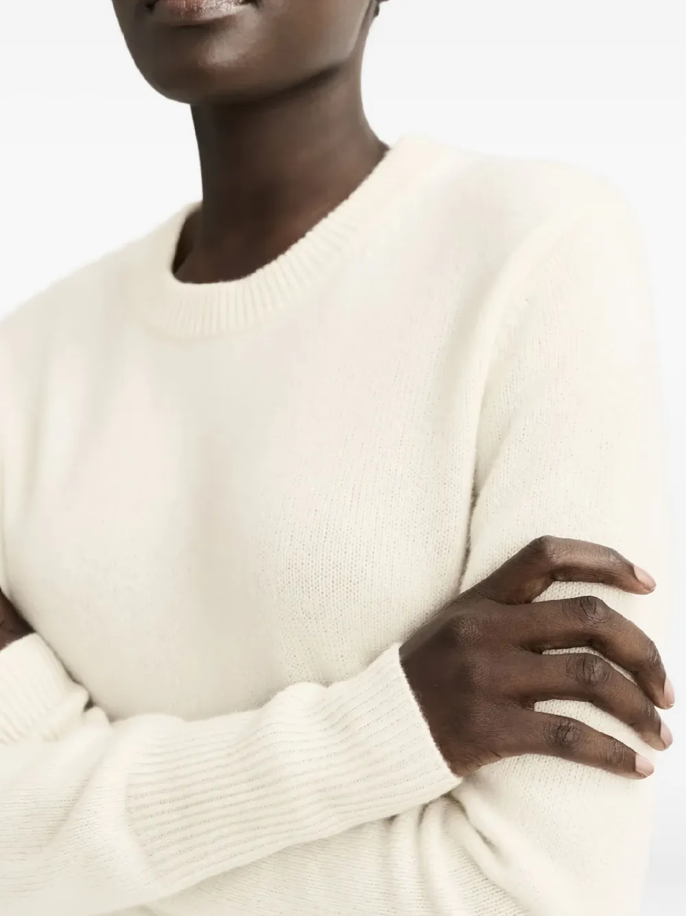 белый вязаный джемпер с круглым вырезом и длинными рукавами