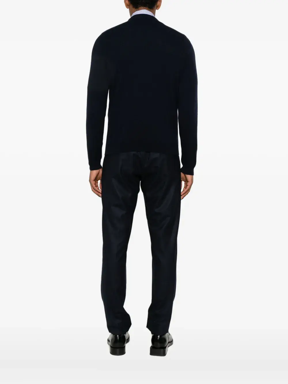 темно-синий свитер с круглым вырезом, длинными рукавами, ребристыми манжетами и ребристым низом