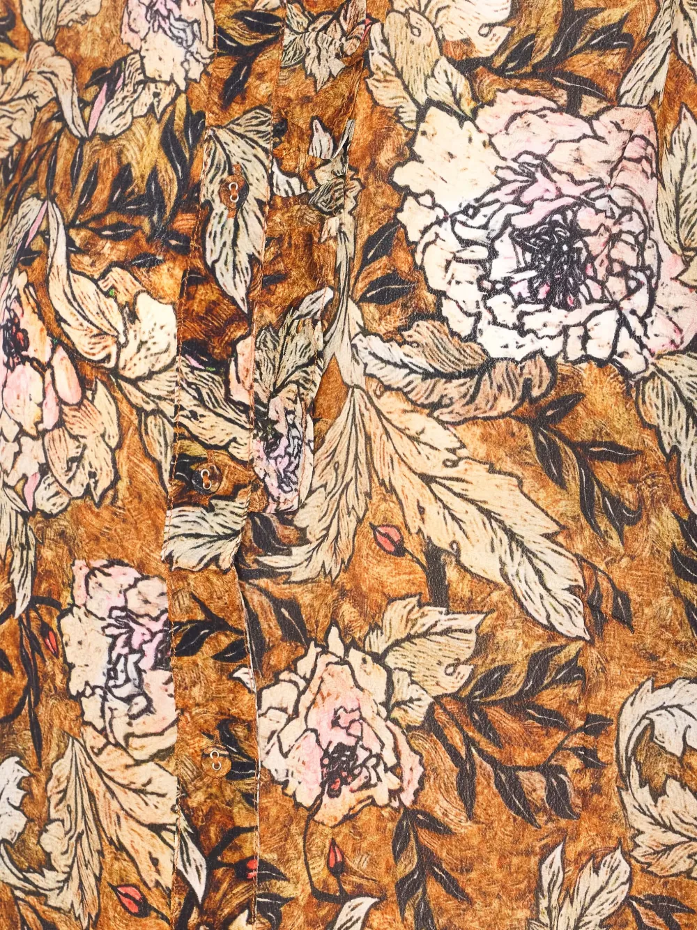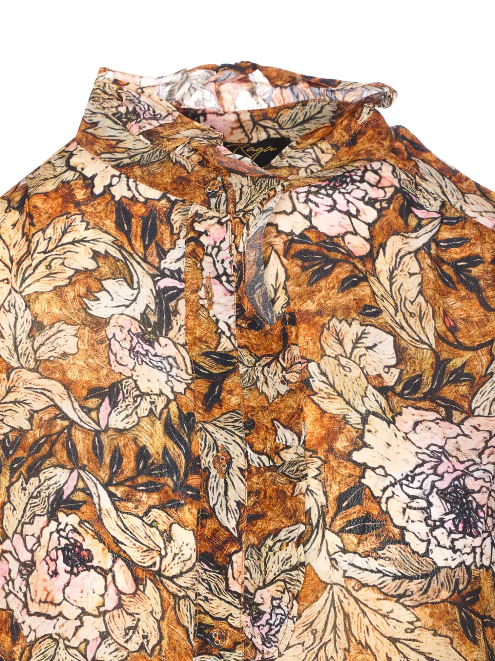 коричневая разноцветная рубашка с цветочным принтом, застёжкой на пуговицы, длинными рукавами и манжетами на пуговицах