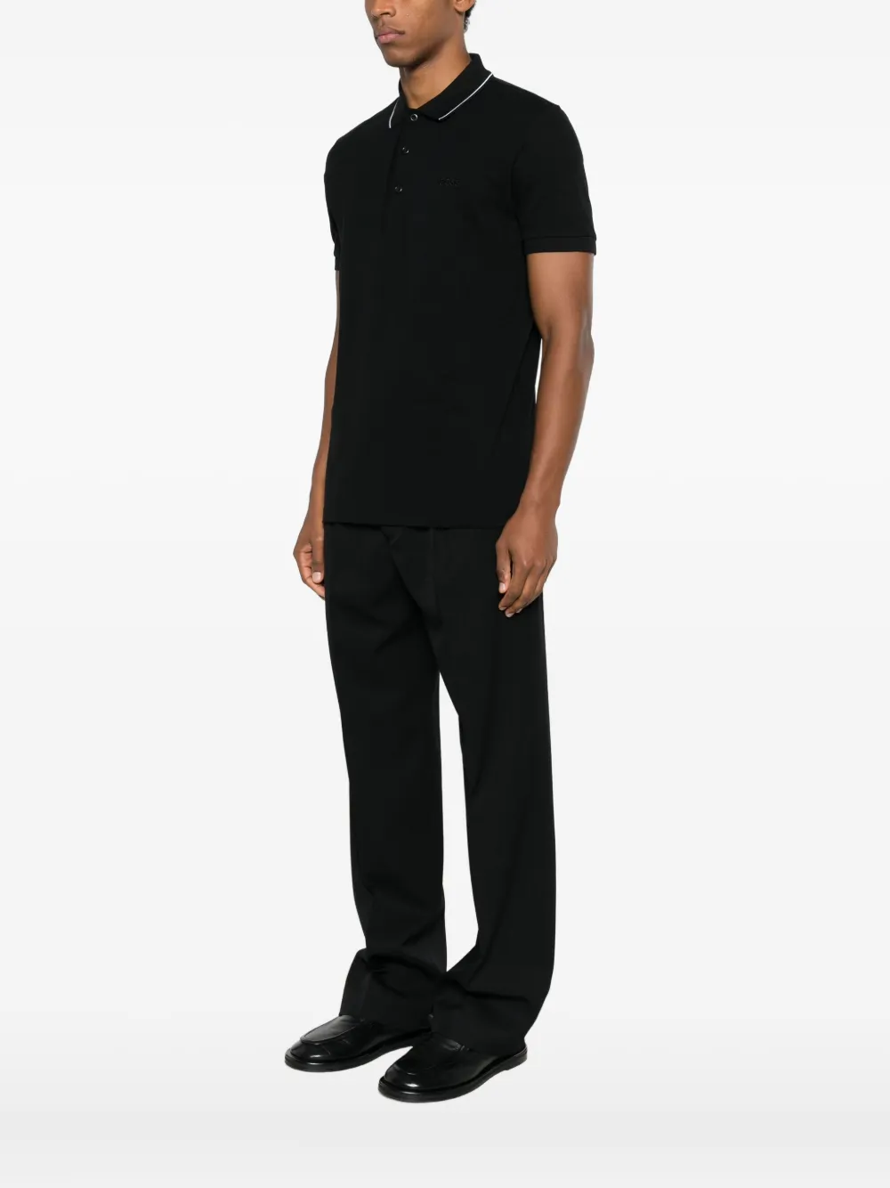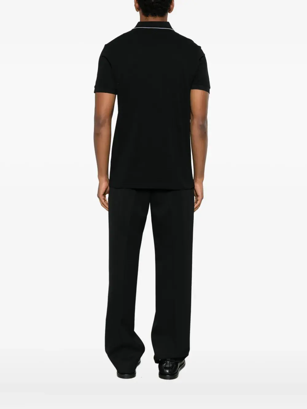 чёрный цвет, воротник с окантовкой, короткие рукава, застёжка на пуговицы, нагрудный карман, тонуальная эмблема