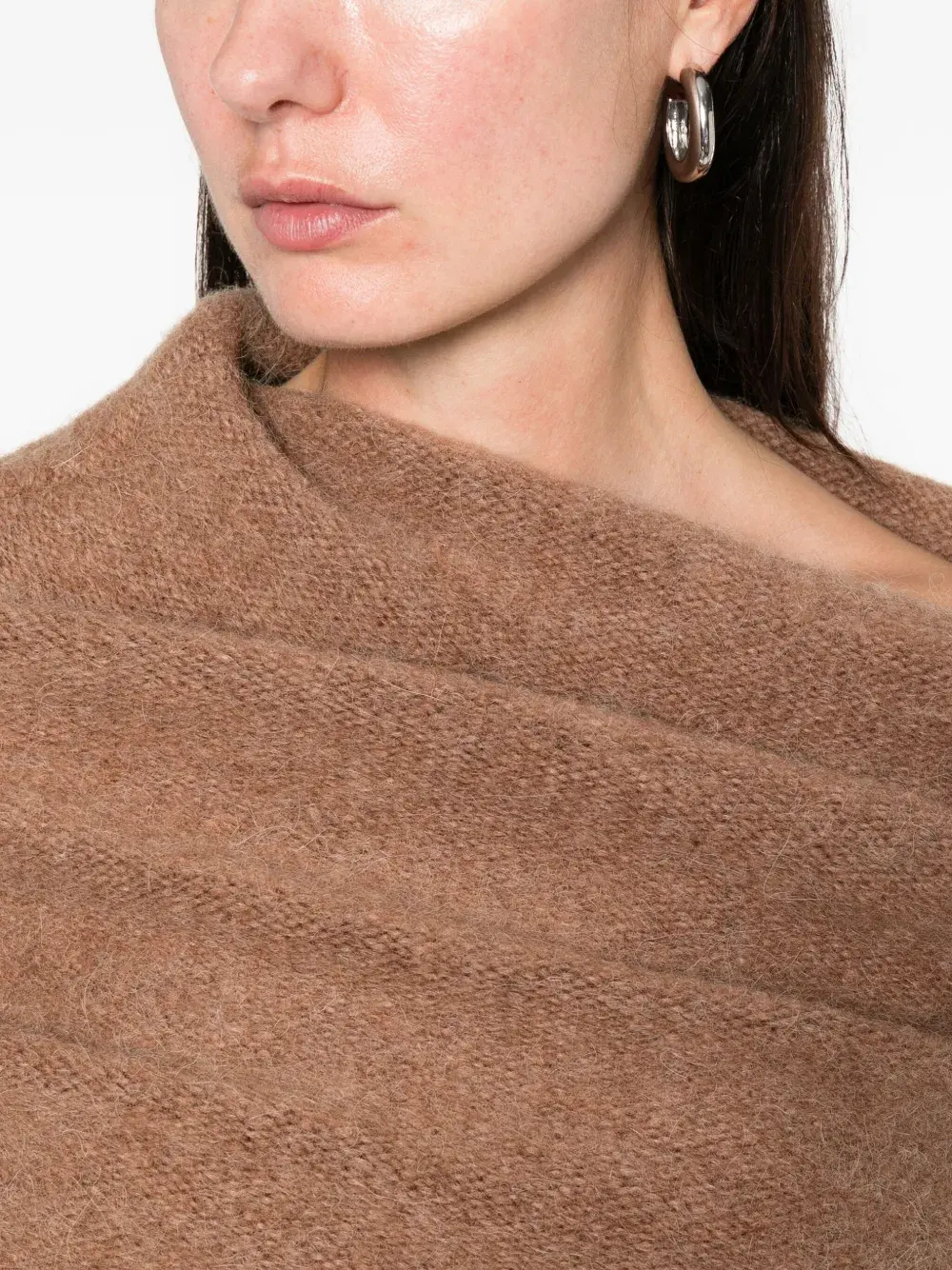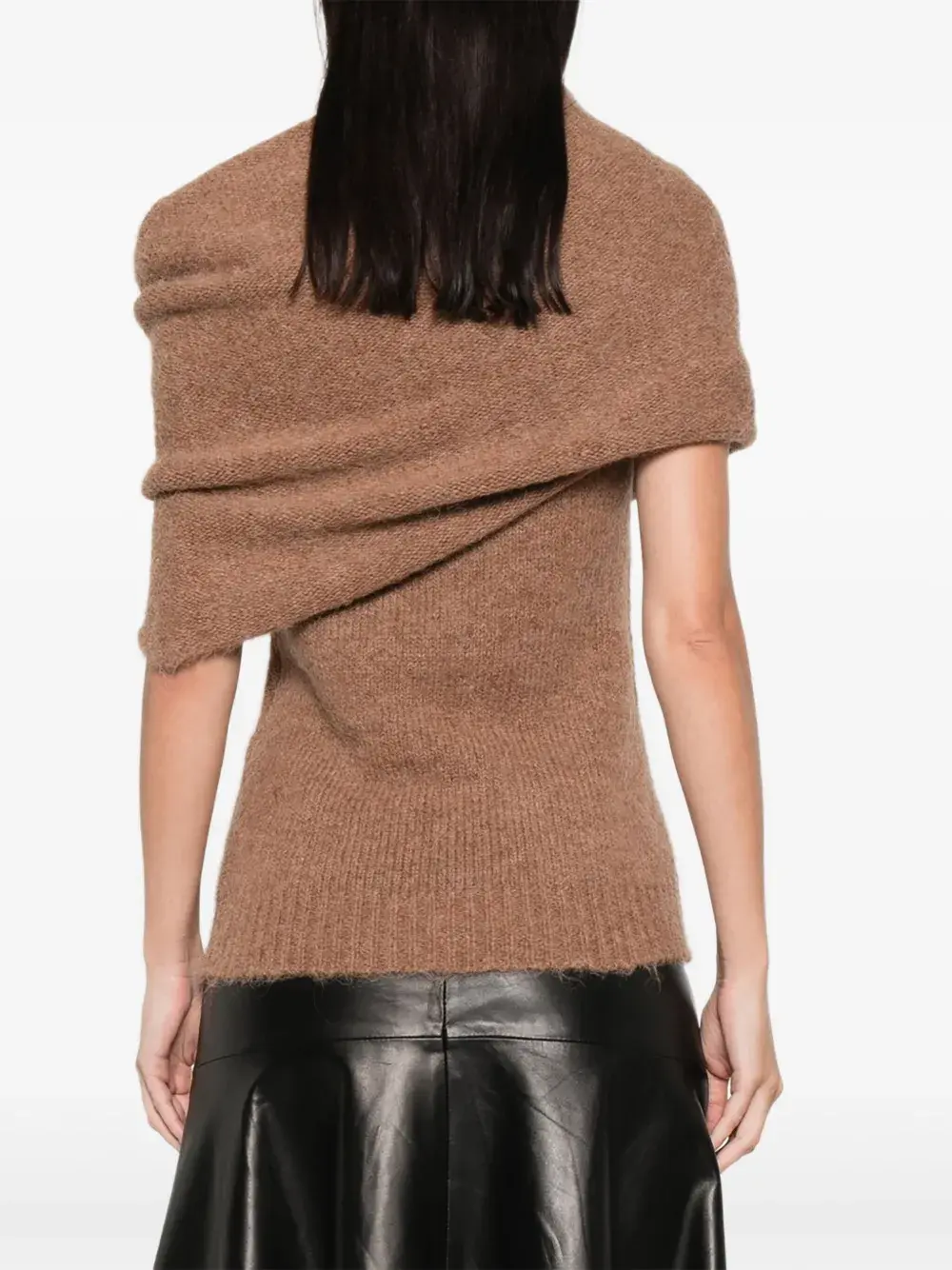 коричневый топ без рукавов с драпировкой, ребристым низом и ребристыми отделками