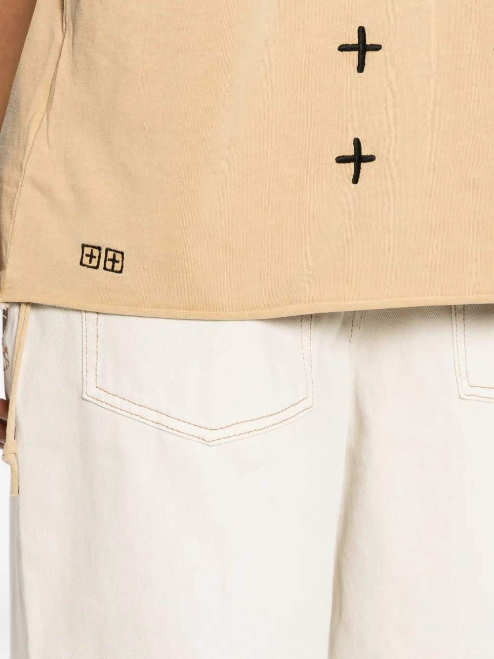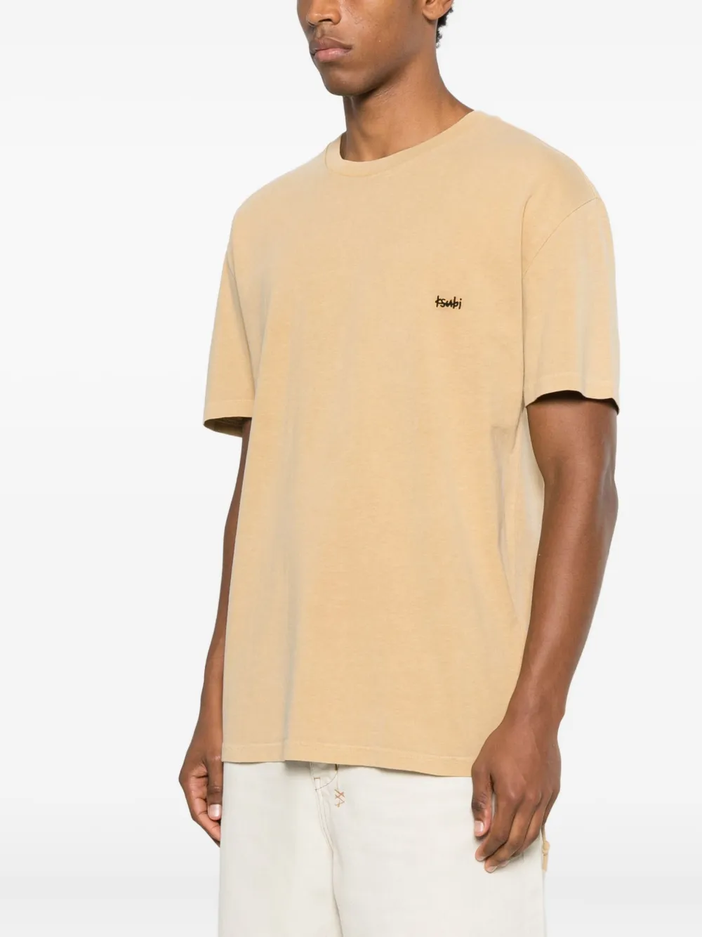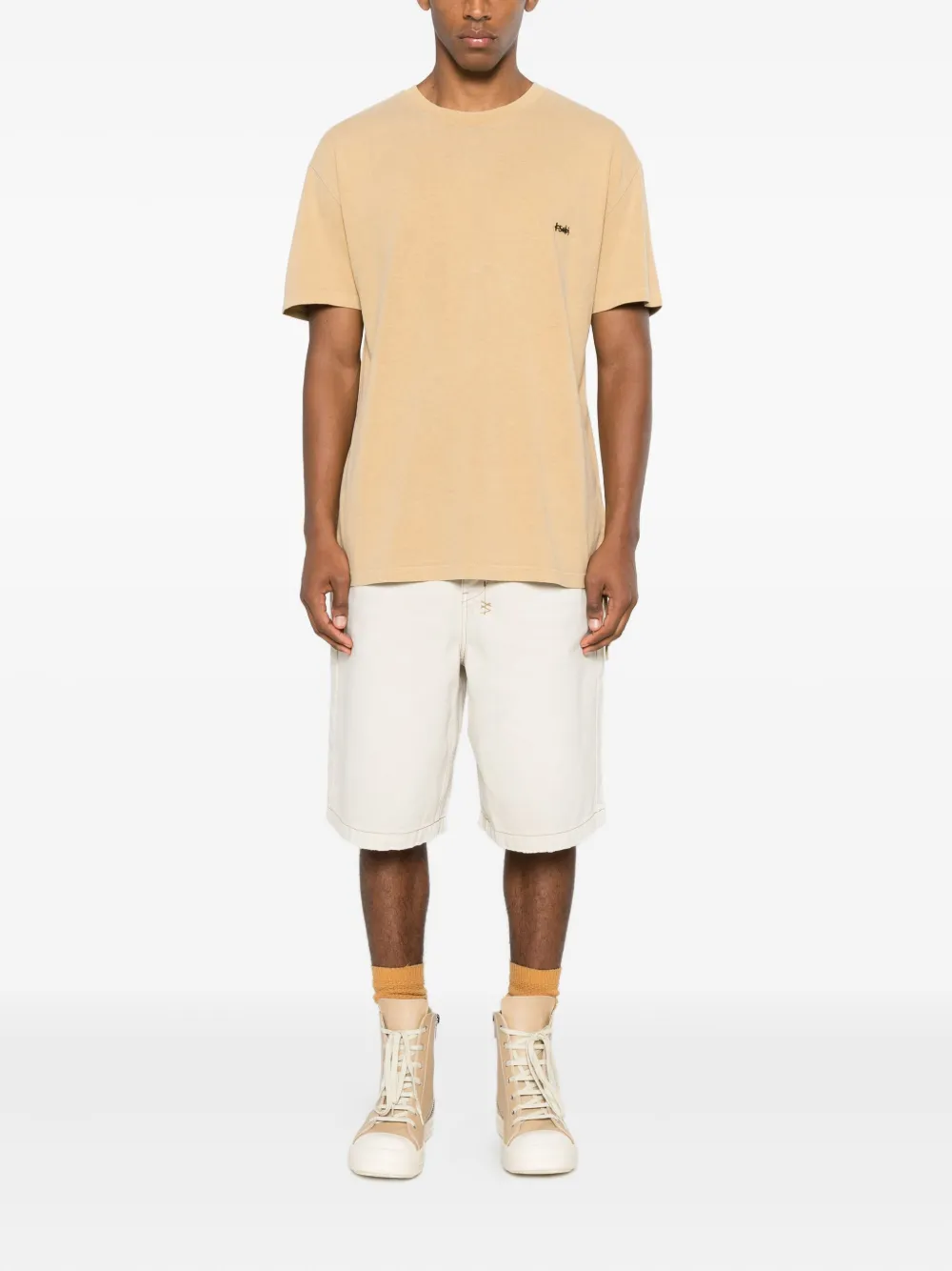 янтарный джемпер с логотипом, круглым вырезом и короткими рукавами