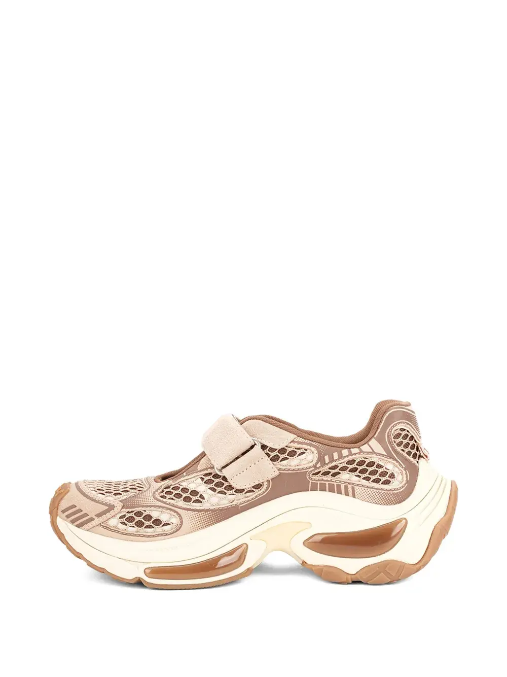 бежевые кроссовки с сетчатыми вставками, застежкой на липучке, рифленой подошвой и логотипом