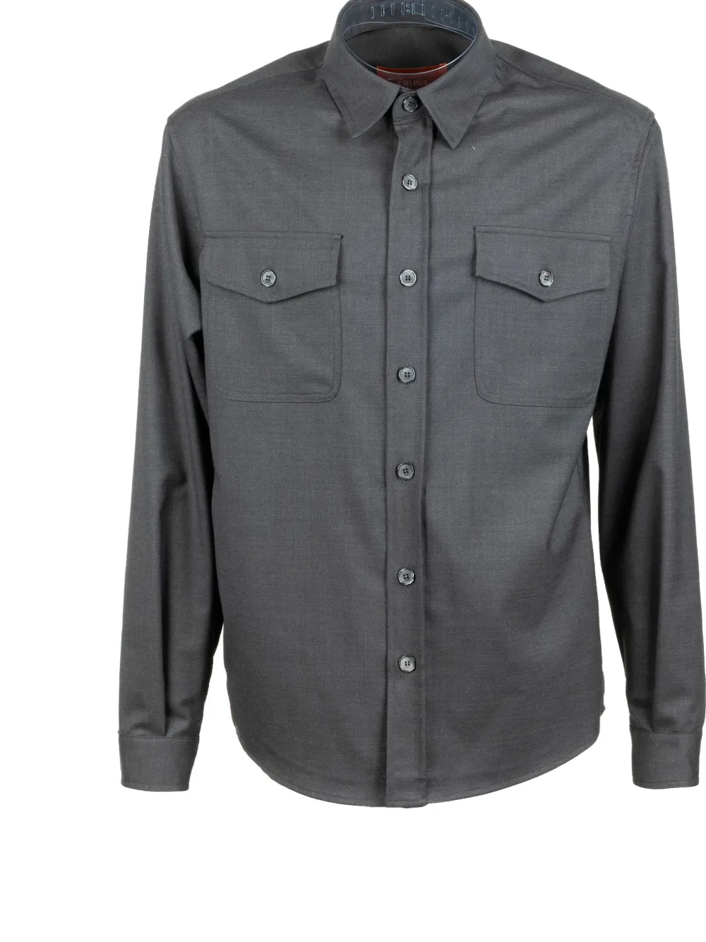 темно-серый, застёжка на пуговицы, нагрудные карманы, длинные рукава, манжеты на пуговицах