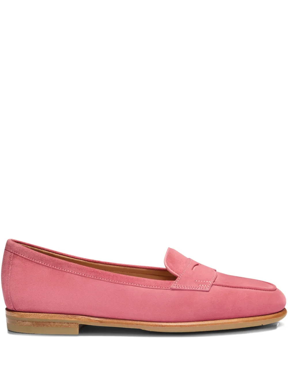 розовые замшевые лоферы без задника с прорезью для украшения и плоской подошвой