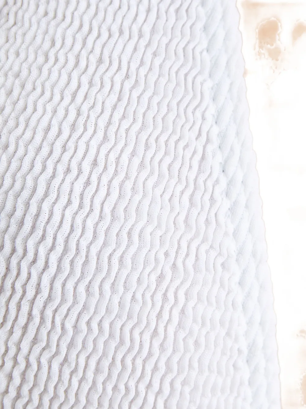 белые текстурированные чашечки в форме треугольника, завязки на шее, завязки на спине